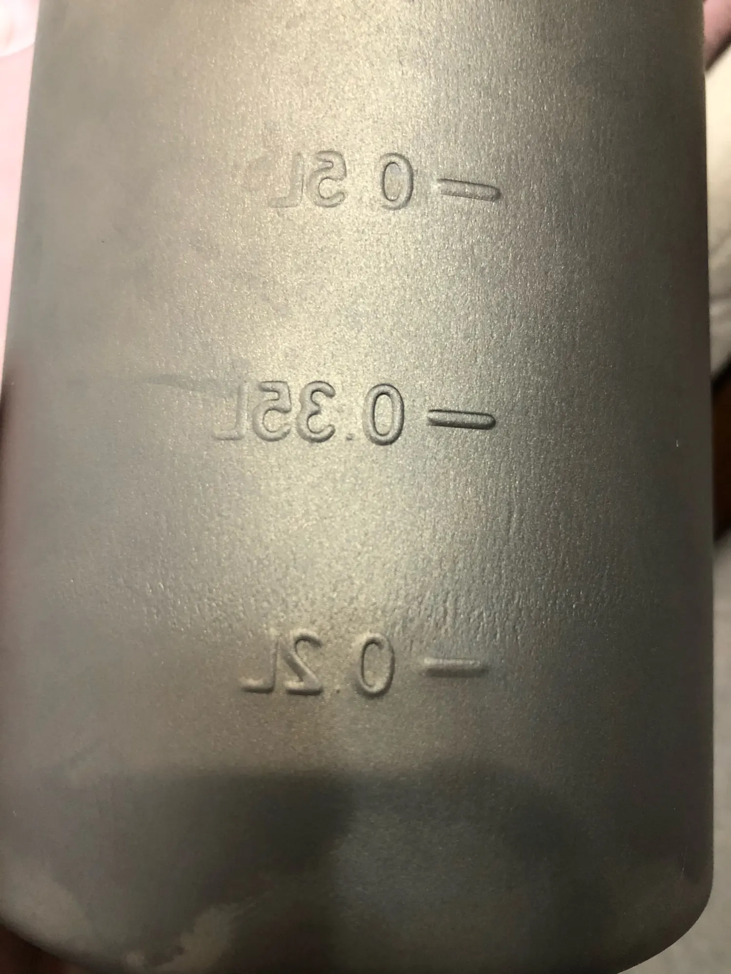 К весу и объёму претензий нет. Качеством НЕдоволен. Вся поверхность в порах каких-то, негладкий абсолютно. Похож на какой-то старый металл, который в земле полежал. Возможно лист, из которого штамповали, был такой а может и вся продукция такая, потому что в других отзывах тоже писали про низкое качество титана. Попытался показать на фото