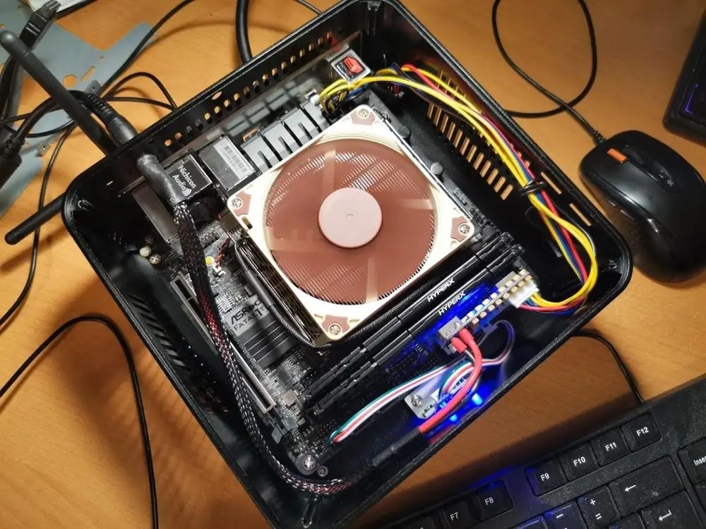 Поставил мать ASRock A320TM-ITX, проц Ryzen 5 2400G, куллер ID-Cooling IS-60, блок питания от ноутбука Asus на 150Вт. Всё влезло и всё пашет норм. Не перегревается. Меньшего размера корпус брать не рекомендую. Брать вполне можно.
