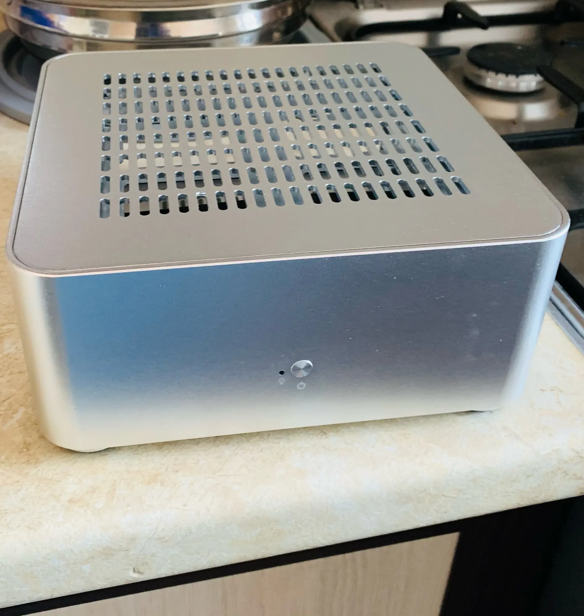 Клевый корпус из довольно толстого алюминия. Собрал в нем следующую конфигурацию: ASRock Fatal1ty B450 ITX/AC, Ryzen 3400G, 16GB hyperX 3200MHz, Samsung evo 860 m2 512GB, Noctua NH-L9a-AM4. В простое температура 40-45градусов. Блок питания на 200Вт довольно-таки здоровый.
