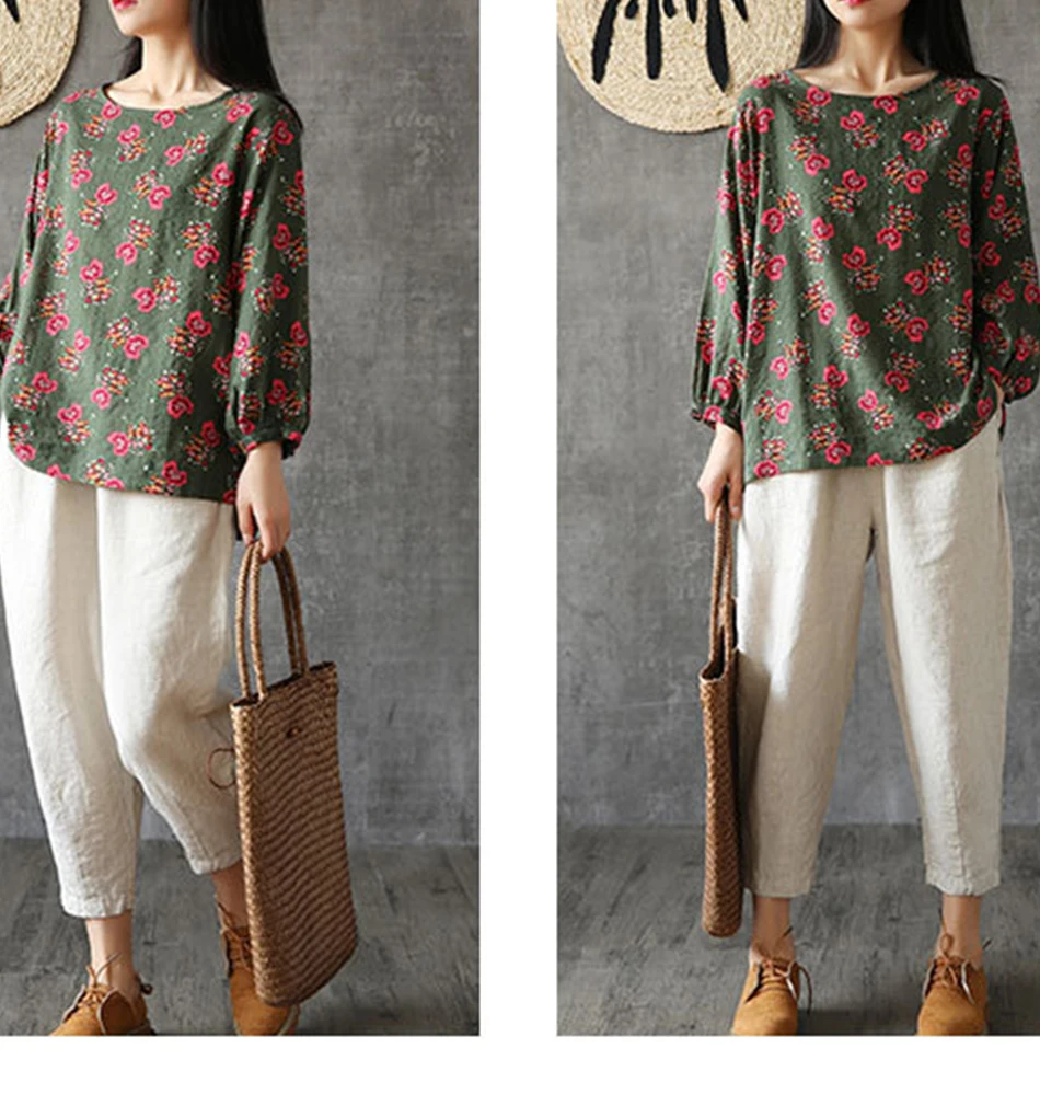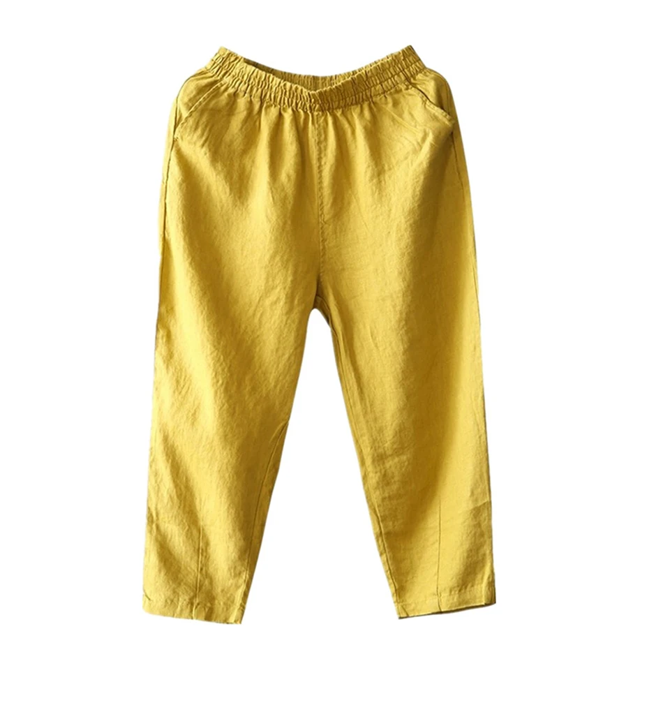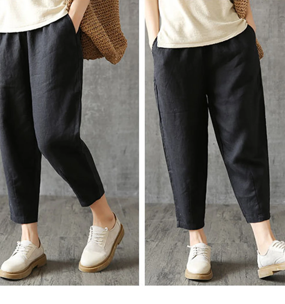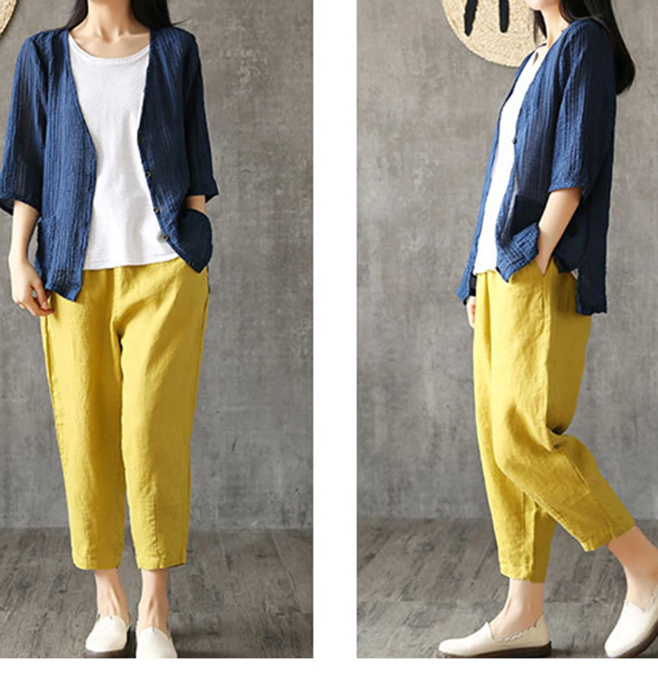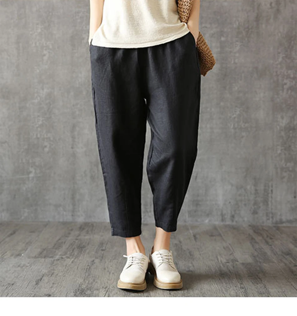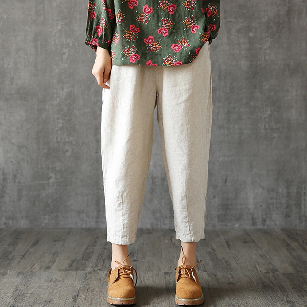 Брюки женские летние из хлопка и льна, свободные, с высокой талией, полосатые, с карманами, размера плюс