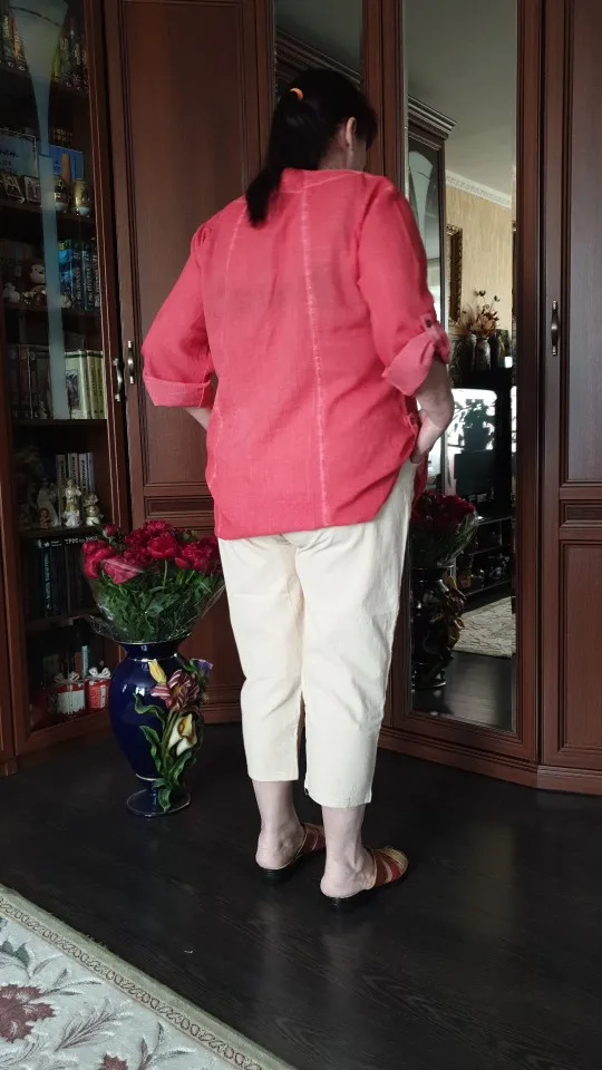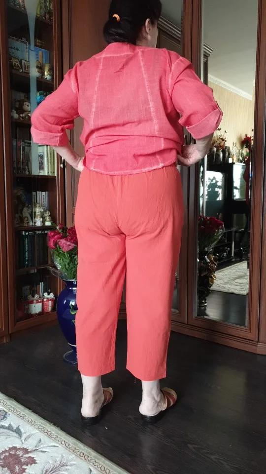 Брюки не соответствуют тому, что на картинке и в описании. конечно это не лён, длина, чуть ниже колена. размер тоже не соответствует.