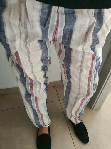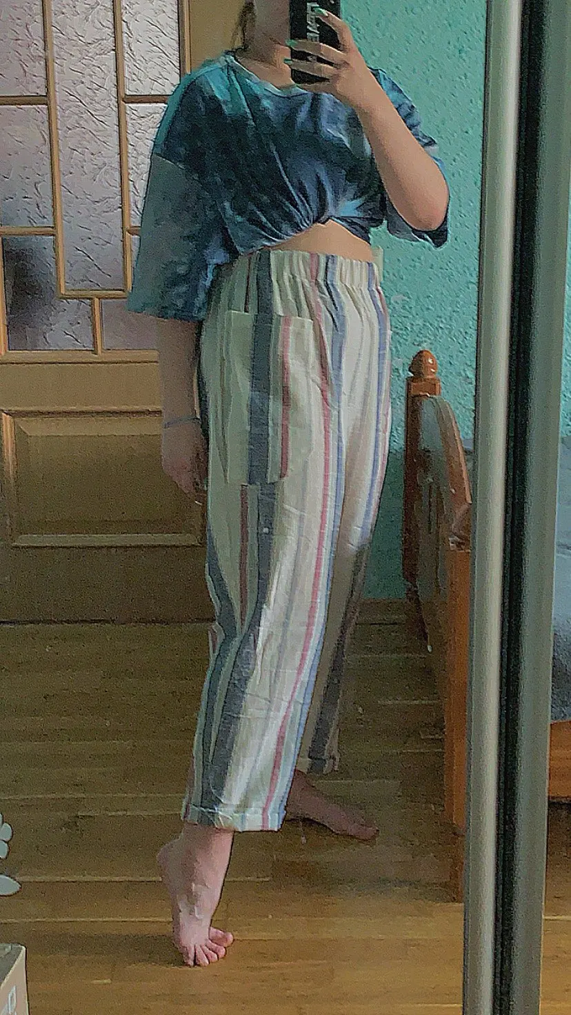 Штаны отличные, ткань натуральная. Единственный минус - очень тонкие, просвечивают трусы.