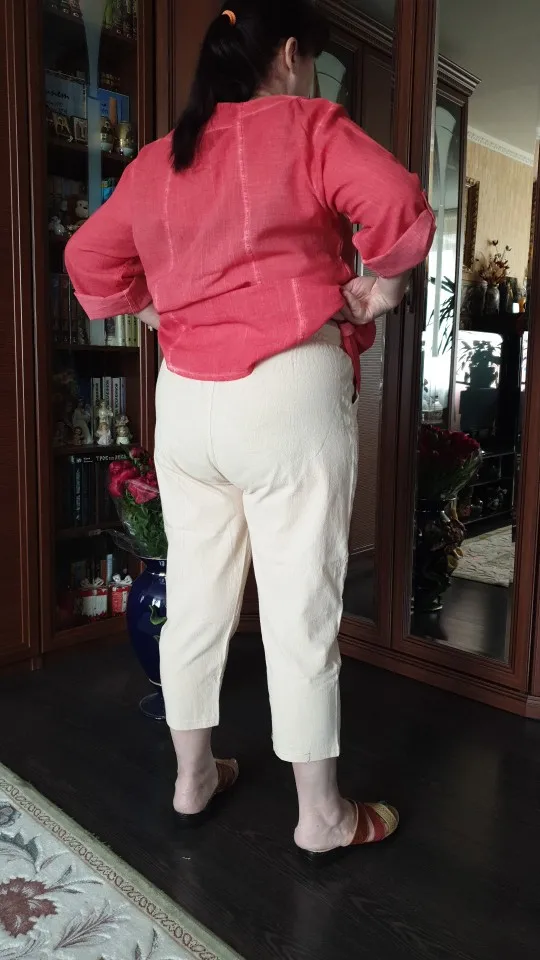 Либо прислали не тот размер, либо брюки абсолютно не соответствуют размерный сетке! заказывала 4 XL, пришли ,наверное, на размер M, качество пошива ужасное , носить такое невозможно! открыла спор , но ни копейки не вернули ! Очень обидно, что не проверяют то, что отправляют !!! Разочарована!!!!!