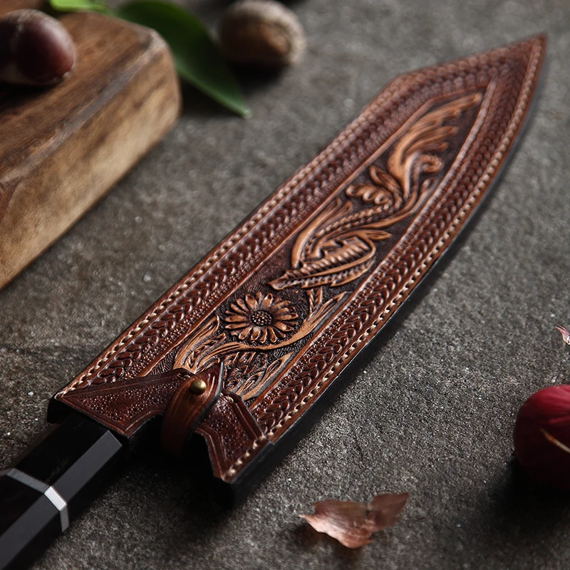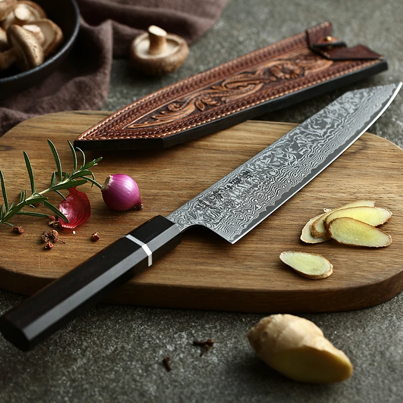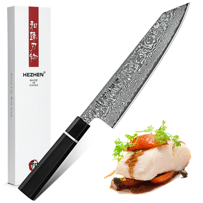 Поварские ножи HEZHEN 8 дюймов, японские высокоуглеродистые ножи сантоку из дамасской нержавеющей стали, из черного дерева и ручки из буйвола icon star icon star icon star icon star icon star