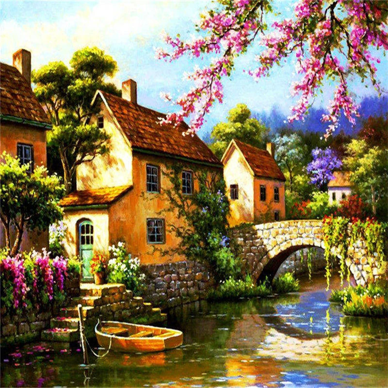 LaoJieYuan DIY Алмазная вышивка Ландшафтный дом вышивка крестиком М...