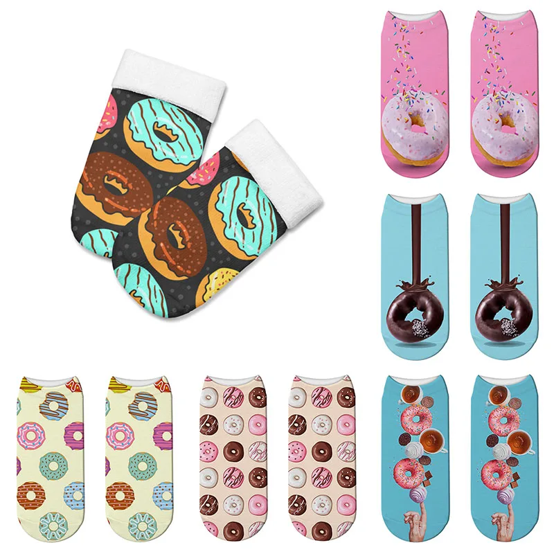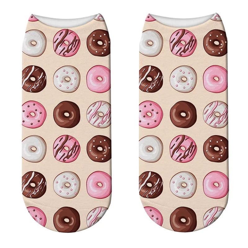 Симпатичные Мультяшные носки с 3D принтом в виде пончика, забавные цветные носки с низким вырезом для закусок Nutella, хлопковые носки унисекс, женские носки