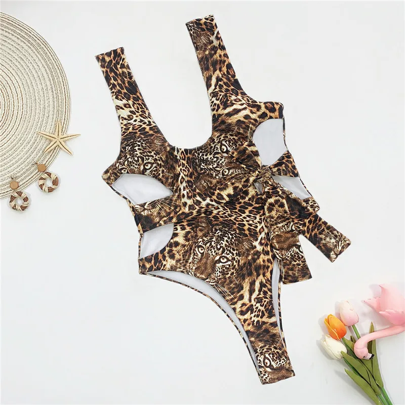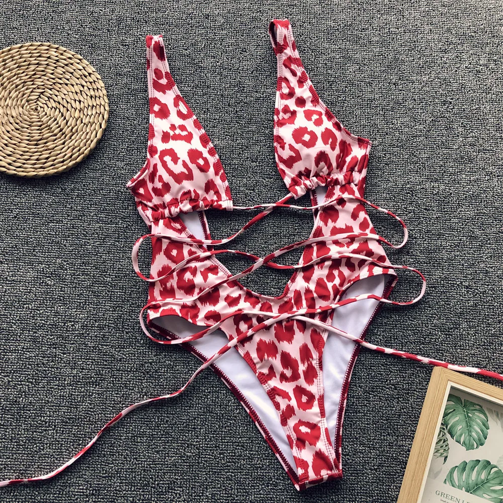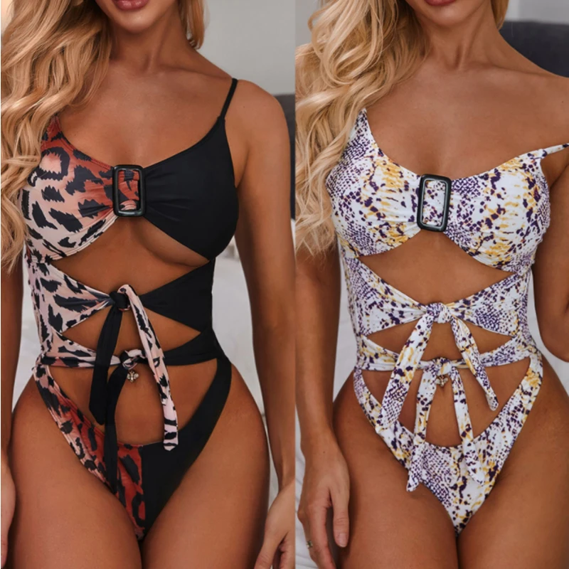Бразильское бикини с леопардовым принтом 2020, купальник пуш-ап, боди, Женский цельный бандажный купальник, монокини, купальный костюм с змеиным принтом
