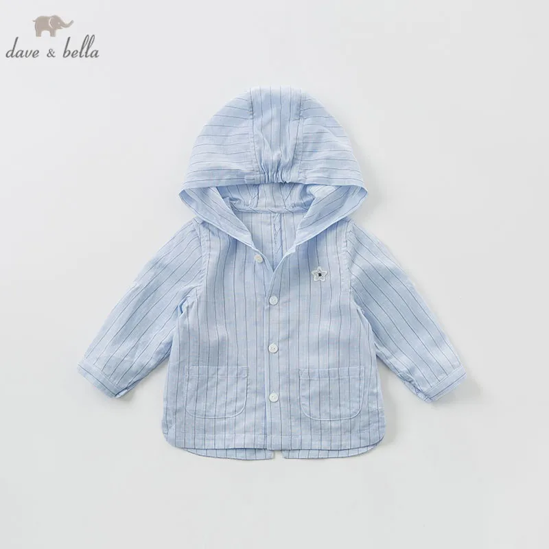 DB9960 dave bellaВесенняя Модная рубашка с капюшоном для маленьких мальчиков, детские топы в полоску, эксклюзивные Топы с капюшоном для маленьких детей
