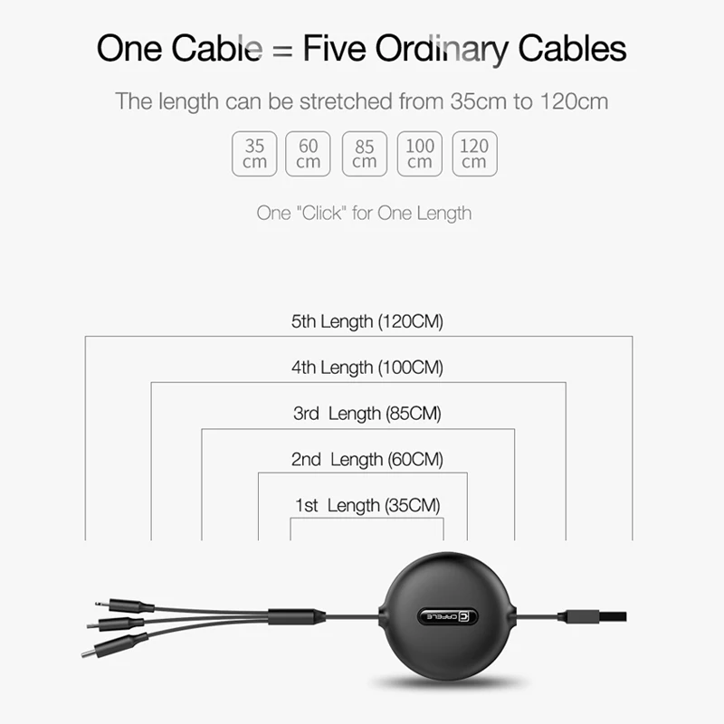 Cafele 3 в 1 Micro USB кабель для iPhone выдвижной кабель 120 см по...