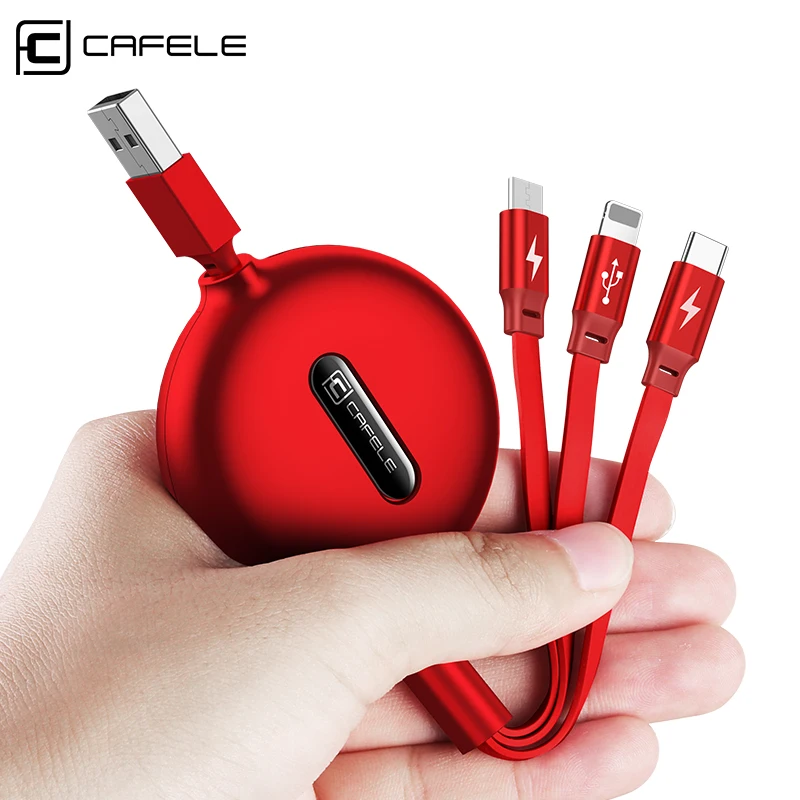 Выдвижной USB-кабель Cafele 3 в 1, кабель Micro USB Type-C для iPho...