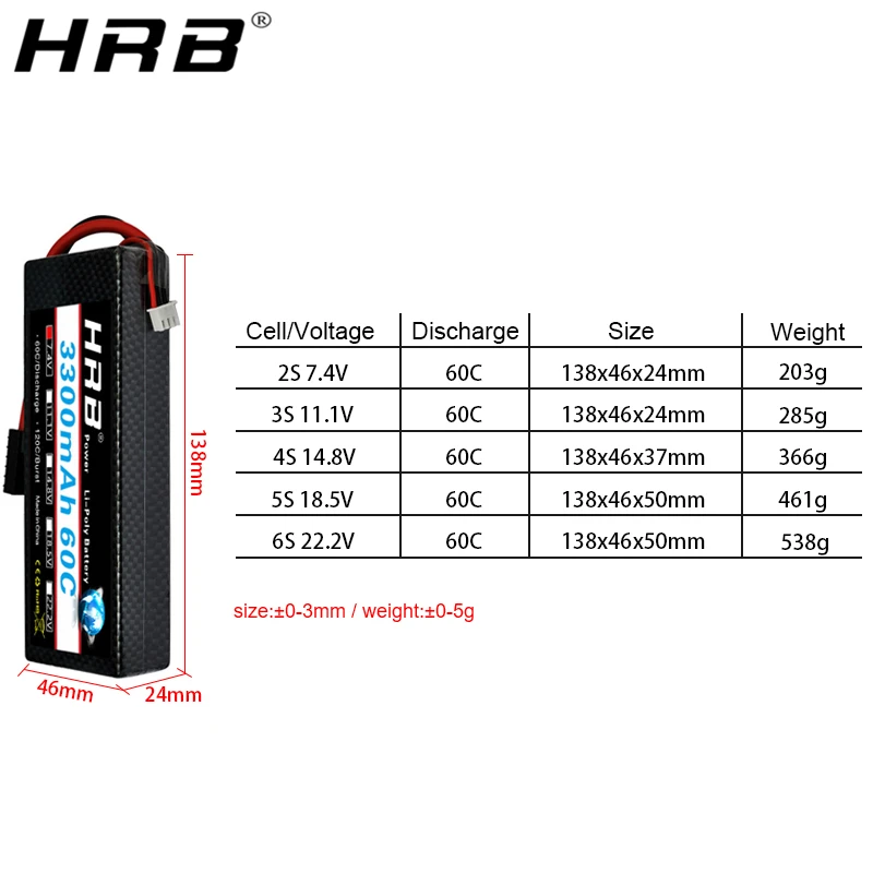 HRB 3300 мАч жесткий чехол Lipo батарея 2S 7,4 V 3S 11,1 V 4S 14,8 V 5S 18,5 V 6S 22,2 V 60C T Deans XT60 жесткий чехол RC Самолеты автозапчасти