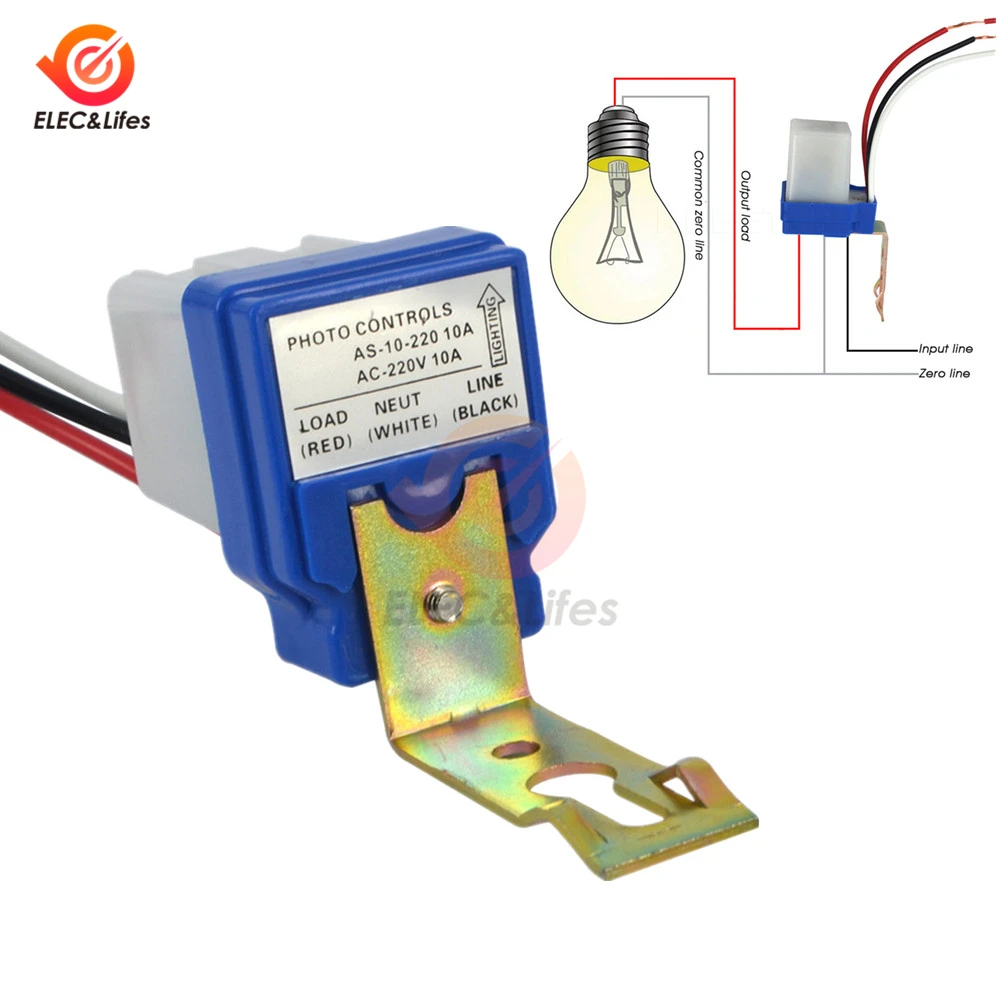 Уличный светильник с фотоэлементом, 220 В переменного тока, 10 А, 12 В, 24 В переменногопостоянного тока, автоматический переключатель вкл.выкл., контроллер, фотопереключатель, сенсорный переключатель