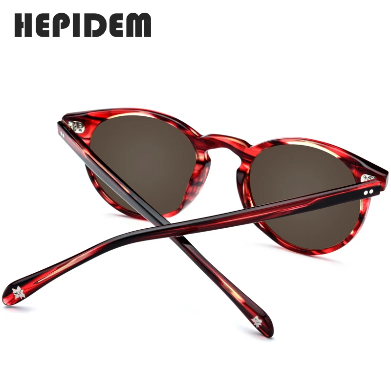 HEPIDEM Ацетат поляризованных солнцезащитных очков Новинки для женщин Винтаж Ретро Круглые Солнцезащитные очки для мужчин и женщин прозрачные солнцезащитные очки 9113