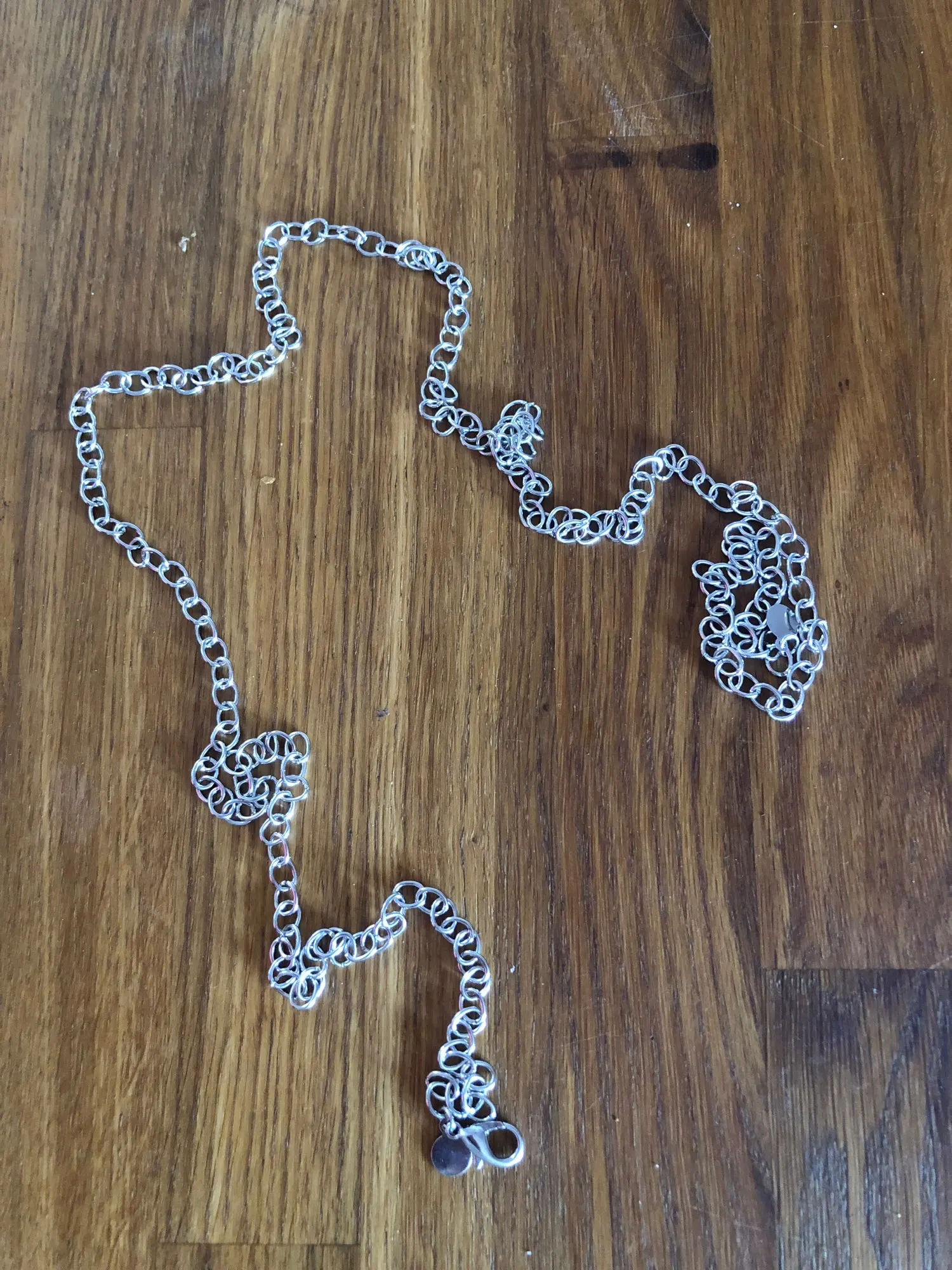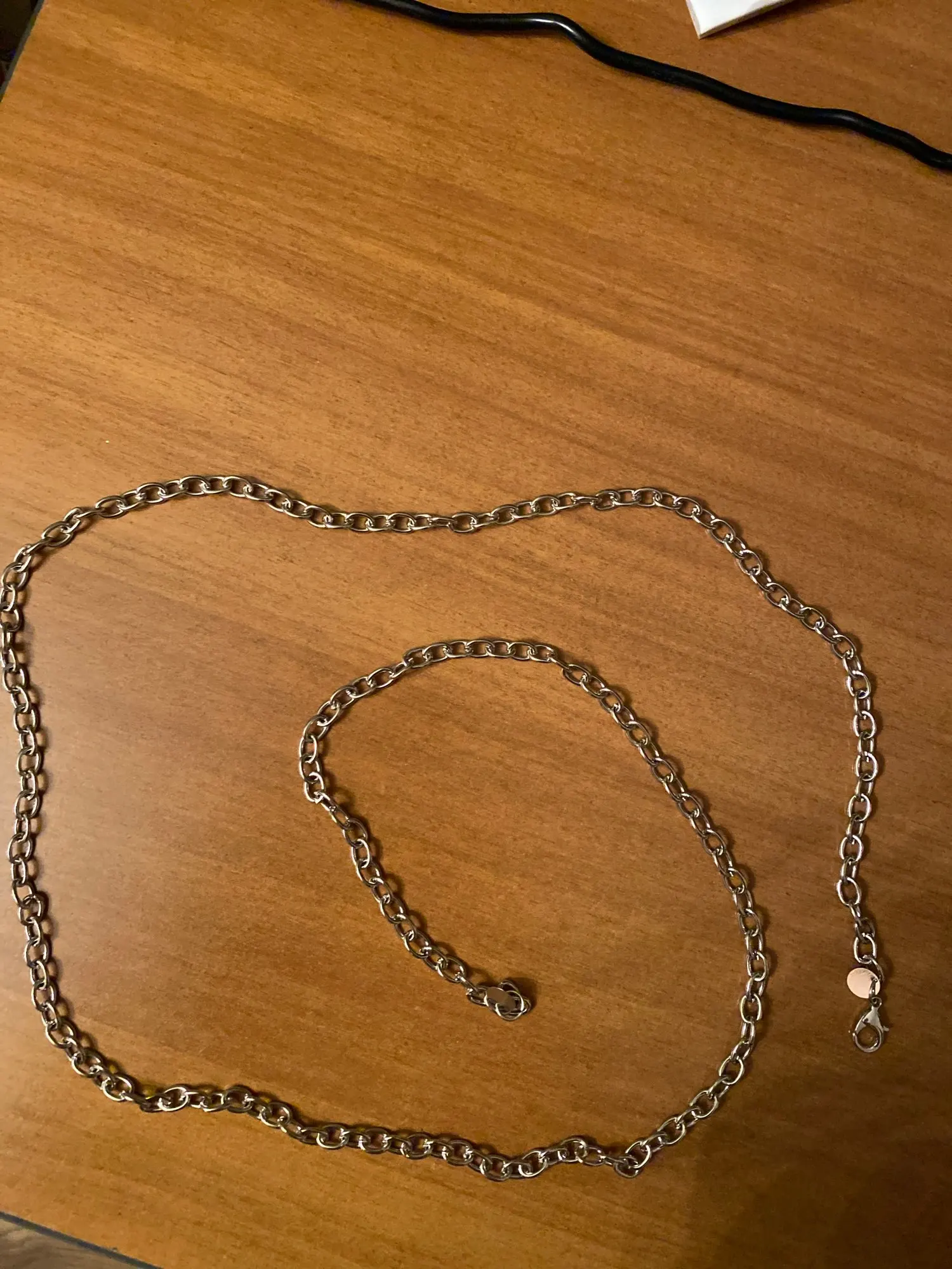 Не знаю сколько шло, не отслеживала. Цепь добротная, крепкая. Удобно то, что застежки на обоих концах, что позволяет регулировать обхват и не дать свисать второму краю. Рекомендую