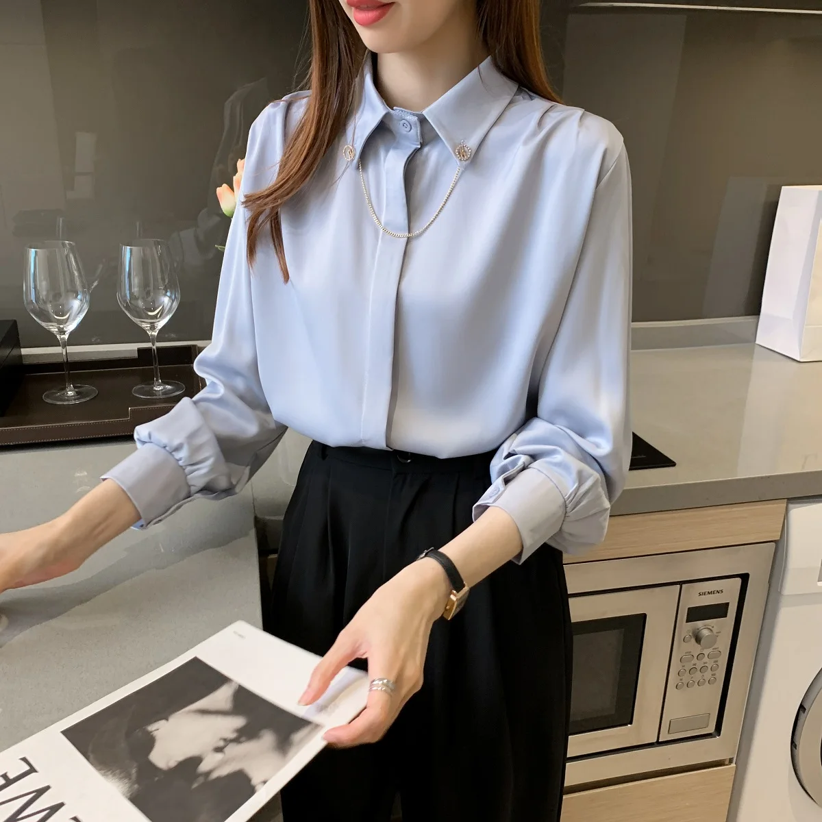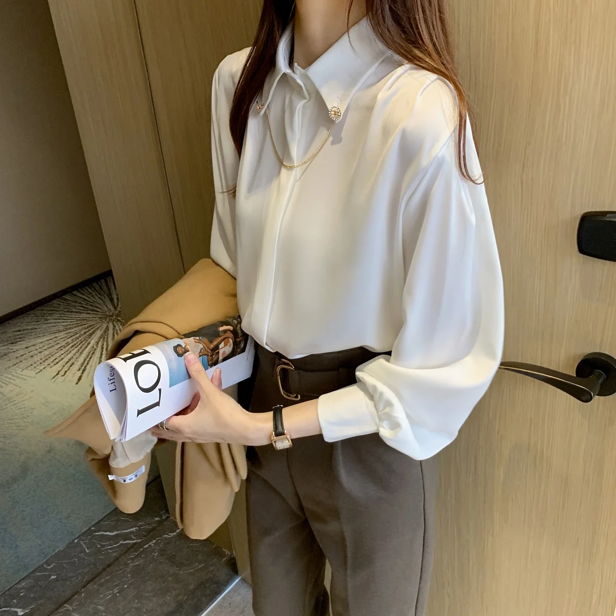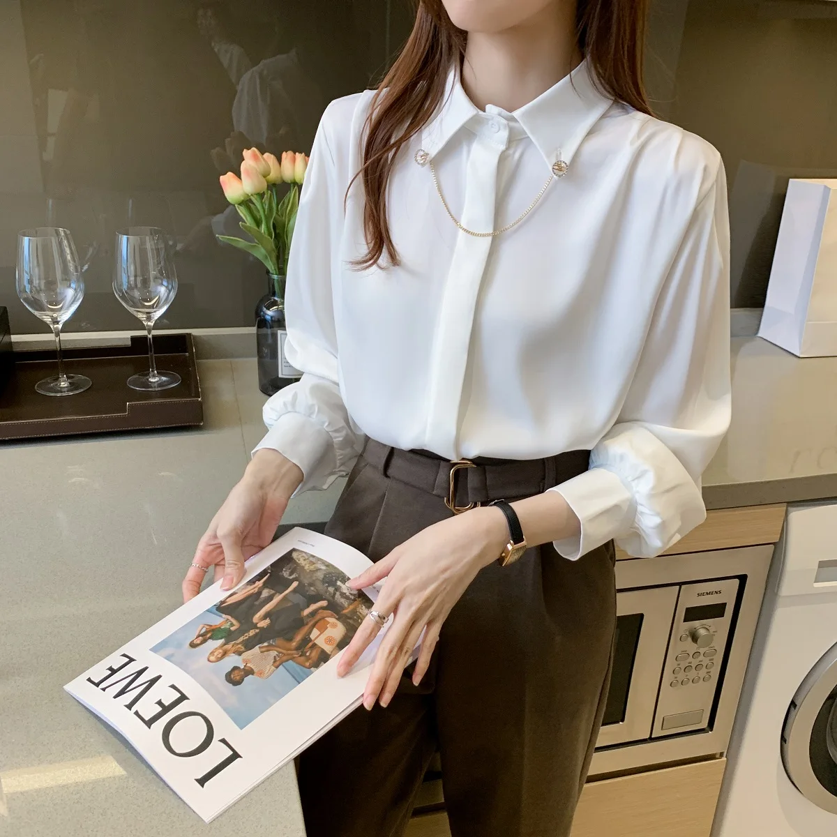 Рубашка из хорошей ткани. На фотографиях. Нет жемчуга на пуговицах, цвет не белый. Размер пришел правильно.