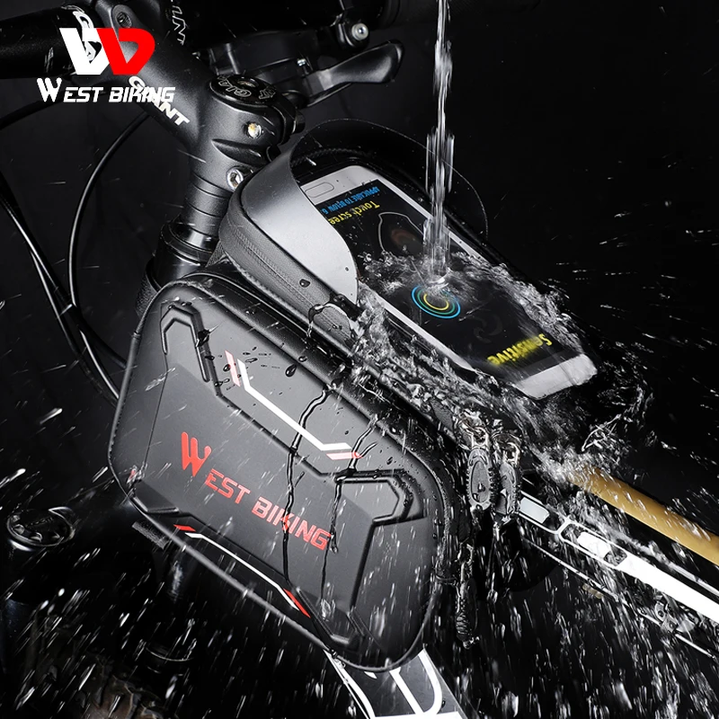 WEST BIKING MTB велосипедная сумка, водонепроницаемая, с сенсорным экраном, велосипедная Передняя труба, рама, сумки 6.2, чехол для телефона, велосипедная сумка