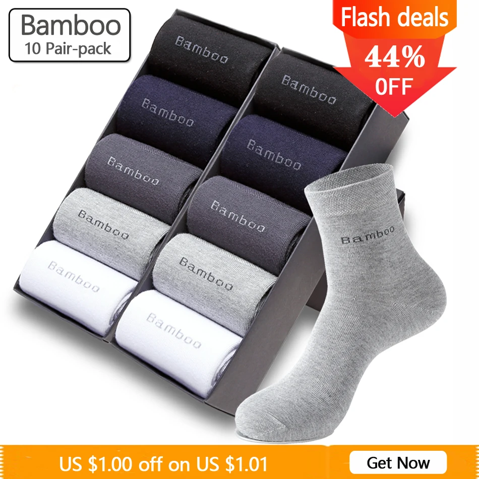 Носки мужские, из бамбукового волокна, с антибактериальными свойствами, 10 парЛот
