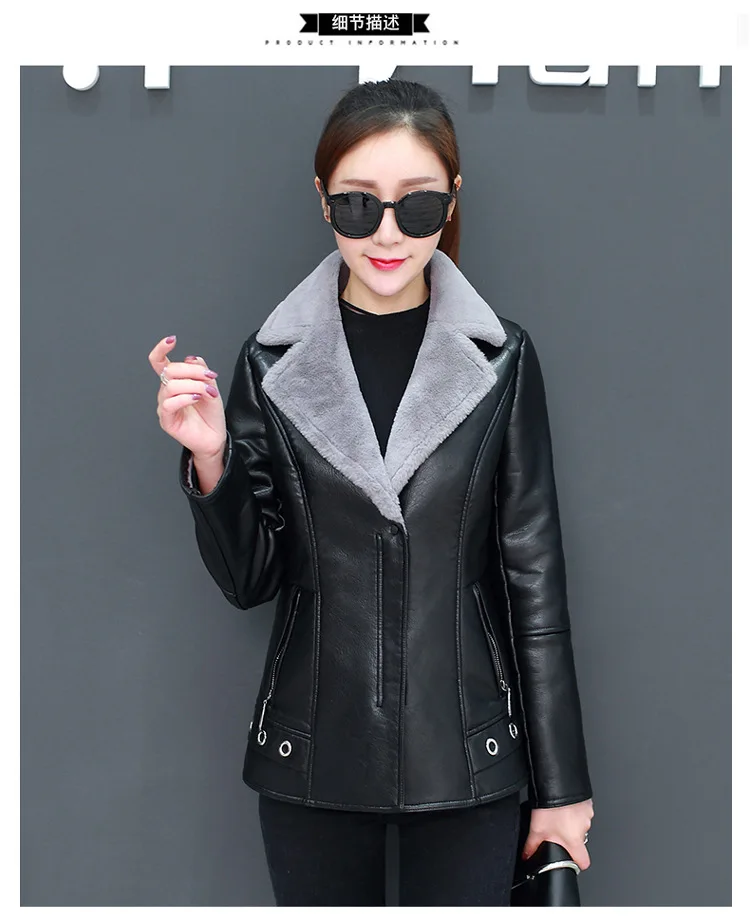 Женская кожаная куртка с отложным воротником, утепленная куртка с бархатным мехом, мотоциклетная и байкерская куртка, женская зимняя куртка оверсайз