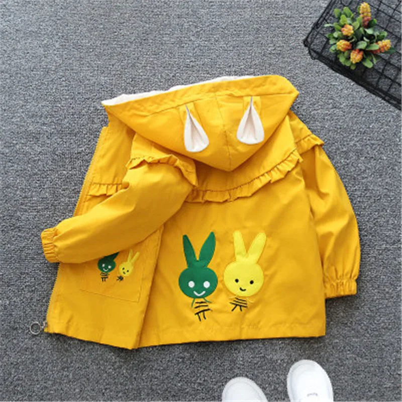 Весенне-осенние пальто для малышей Модная тонкая куртка с капюшоном и цветочным рисунком для маленьких девочек Детская верхняя одежда, пальто От 2 до 7 лет