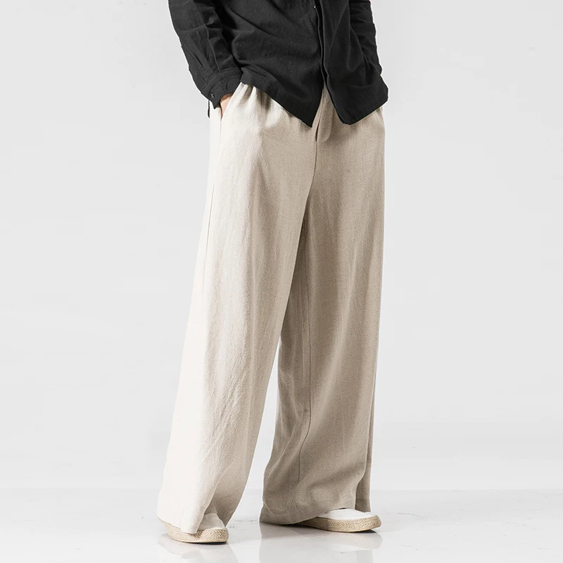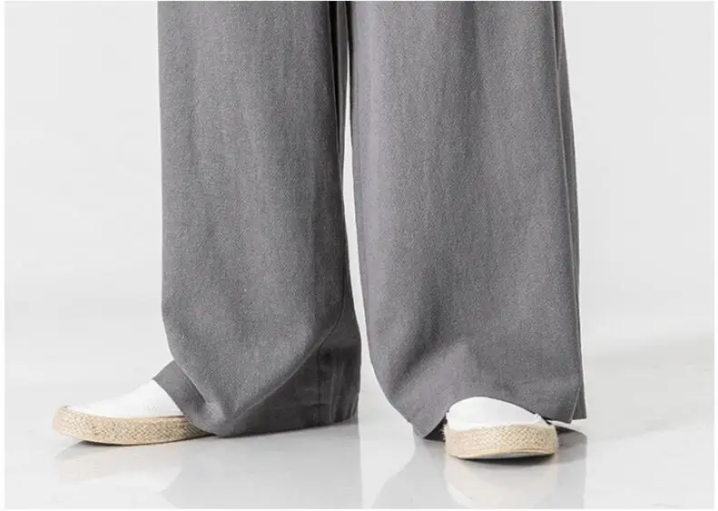 Брюки мужские хлопково-льняные с очень широкими штанинами, Модные с...