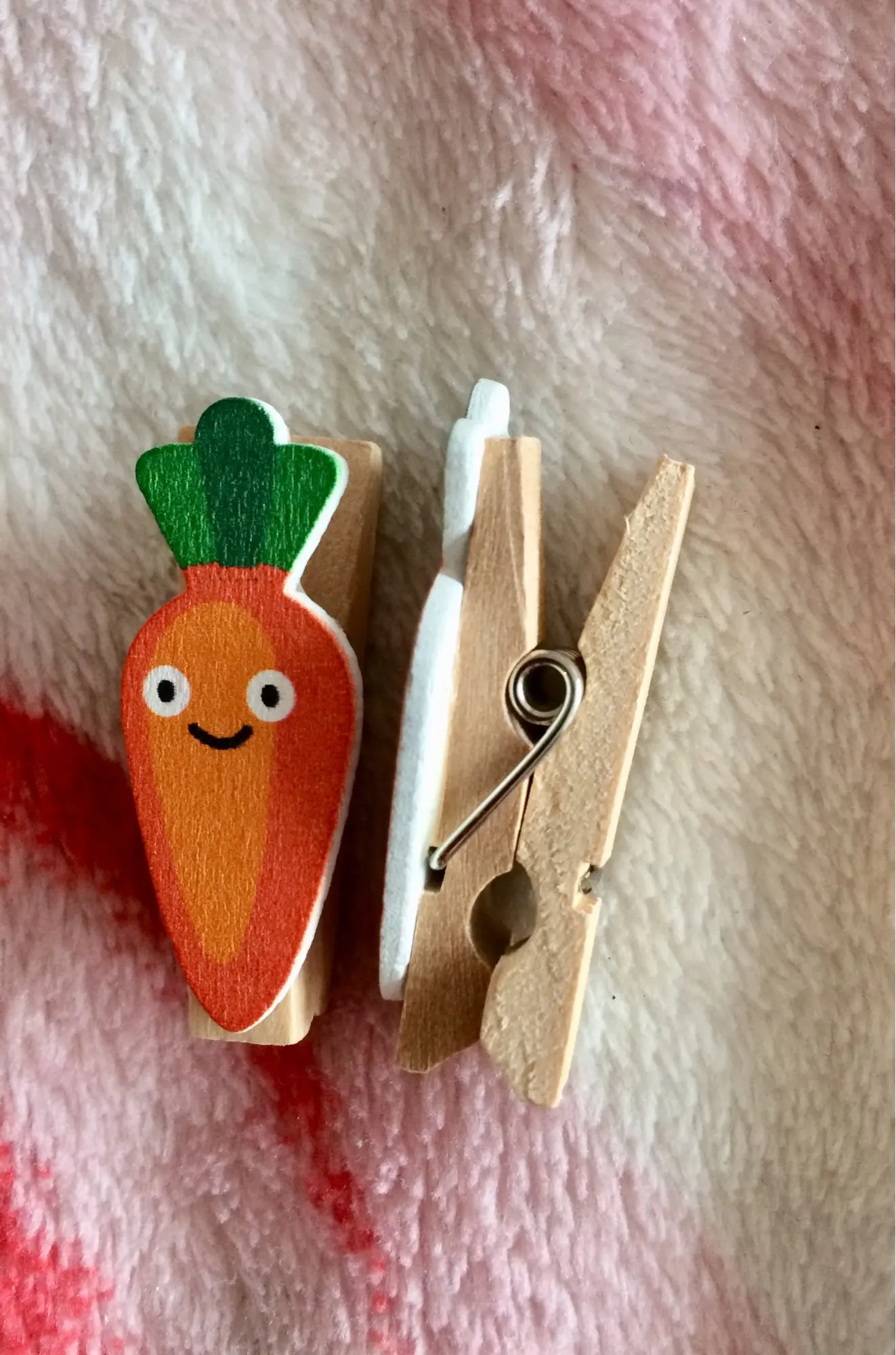 Забавные прищепки. Дошли быстро - всего за 20 дней. На одной прищепочке есть небольшое непрокрашенное пятнышко, как-будто кто-то погрыз морковку :). А так все отлично.
