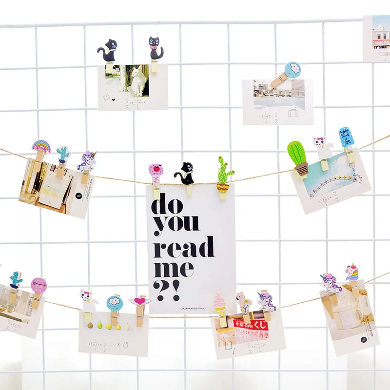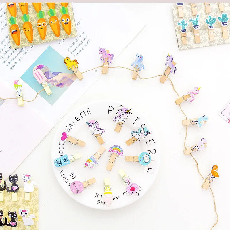 10 шт. мини деревянный зажим креативные персонажи из мультфильмов Kawaii кошка Единорог модельные скрепки DIY Фото зажимы декоративные детский подарок