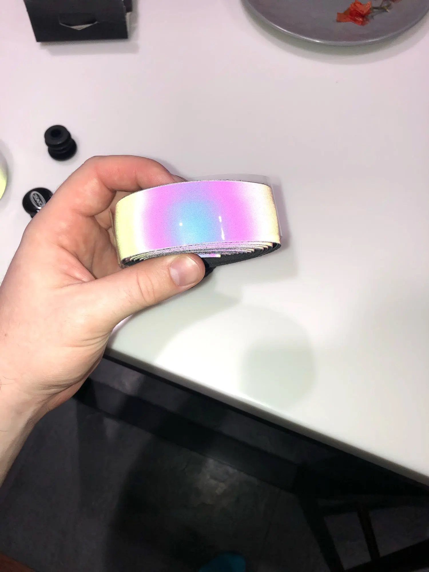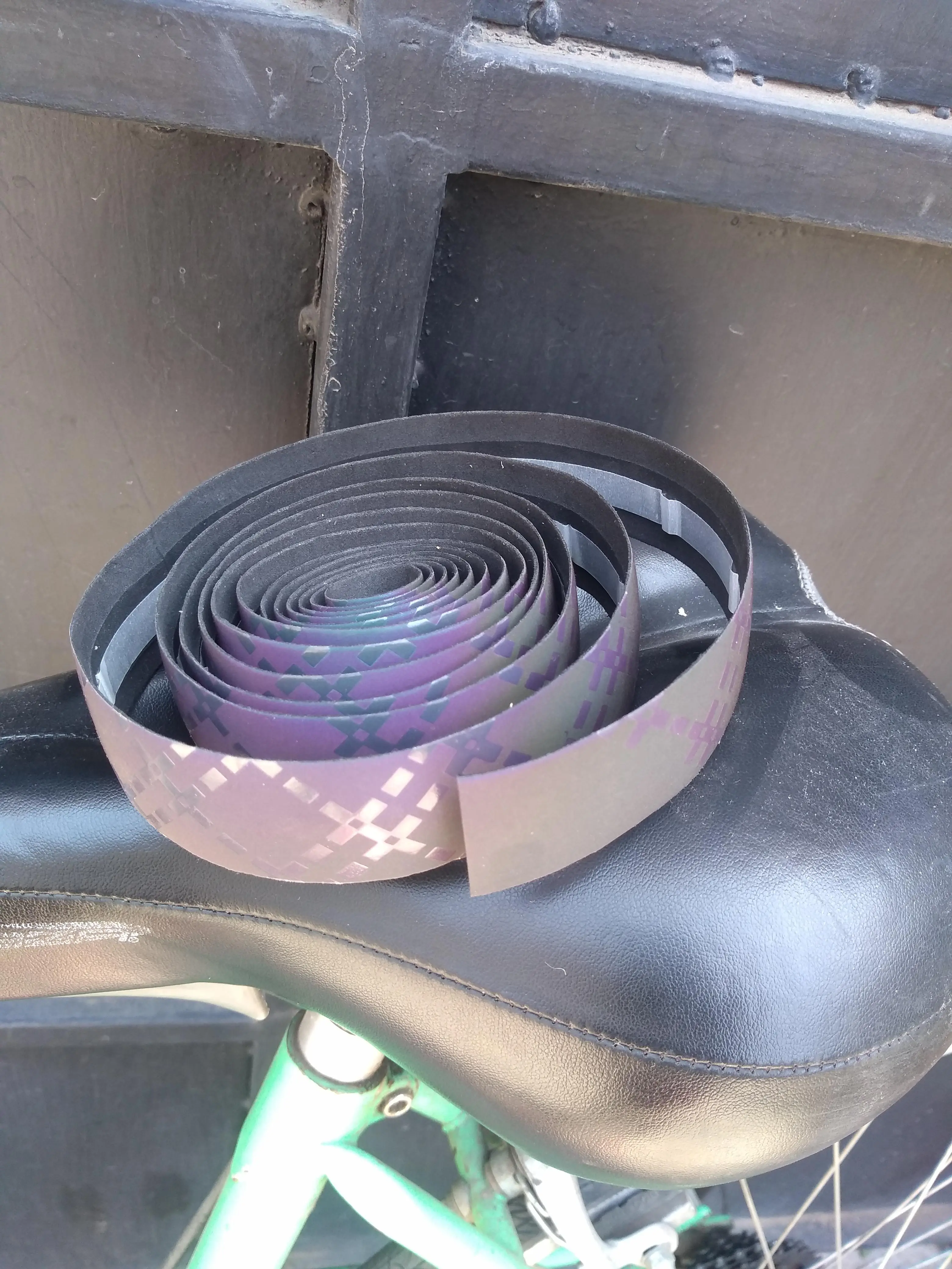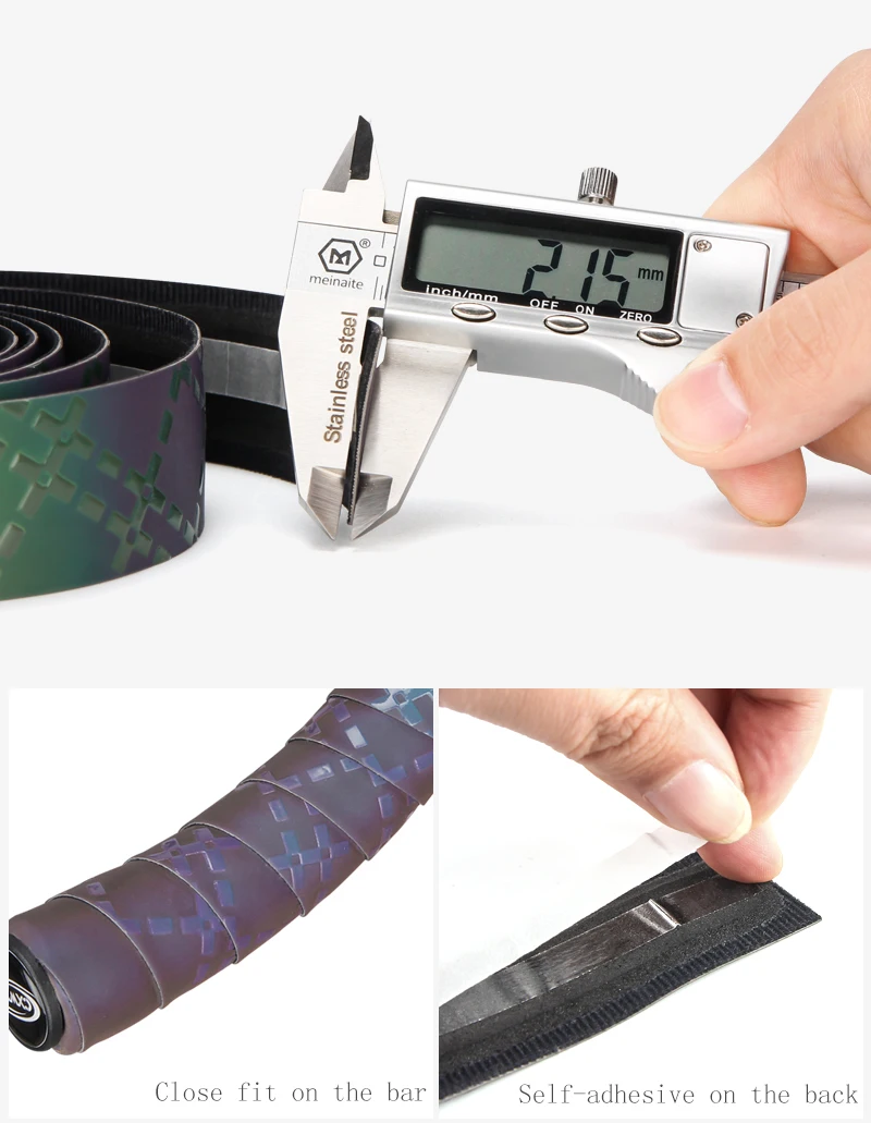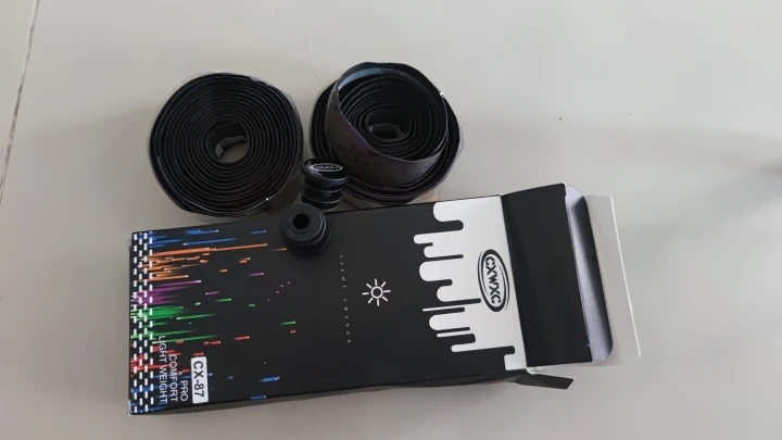 Лента, которая показана на фотографиях, однако отделка не имеет большого сцепления, с перчатками она немного улучшается. В коробке указано, что 2,20 mtrs приносит 1,17 cms, что или влияет на то, что вся ручка покрыта. Они довольно хороши, они мне понравились.