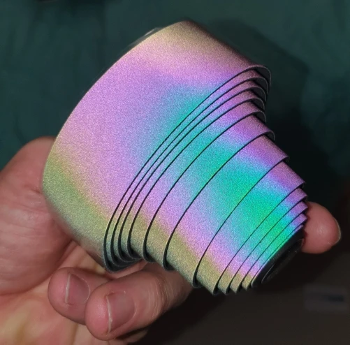 При ходьбе на открытом воздухе он не так сильно отражается, но выглядит красиво. Руль с цветами, которые он принимает на солнце