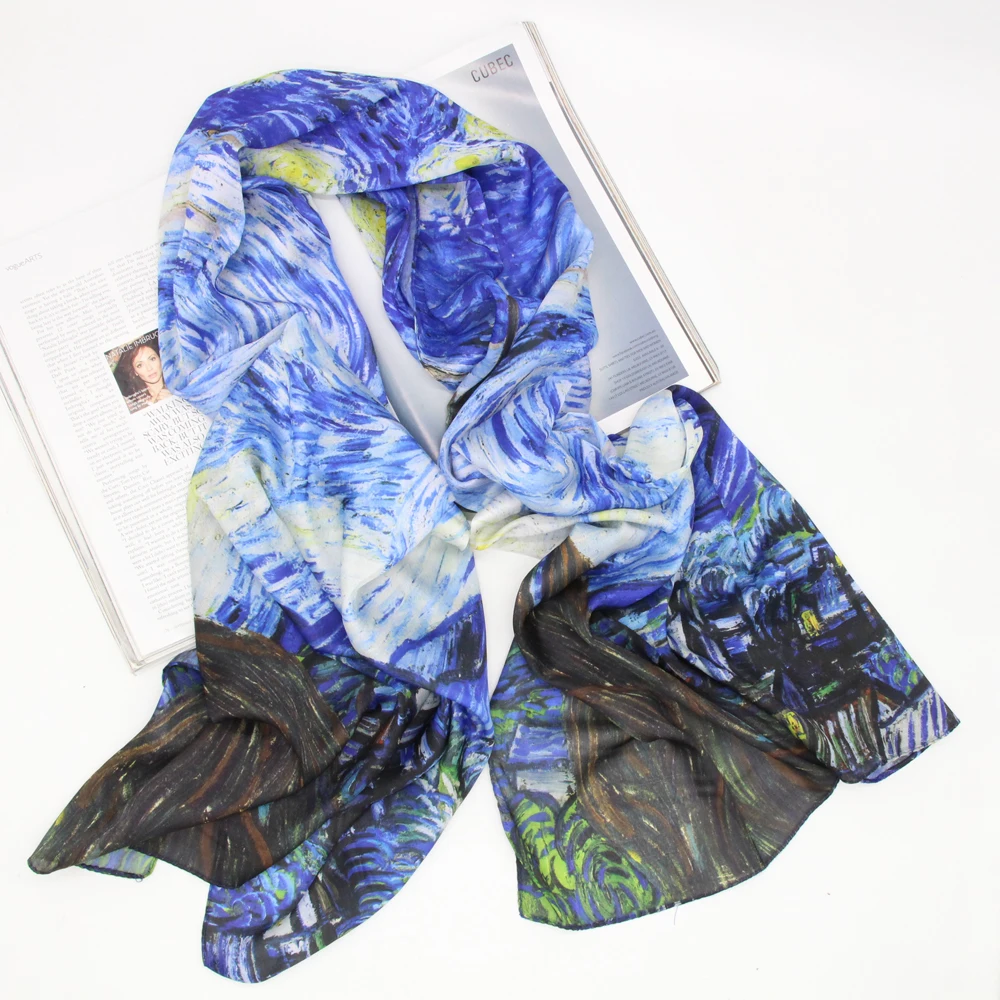 Женский шарф-Бандана KlimtVan Gogh, с масляной цифровой картиной, в итальянском стиле, шали из фуляра, LL190202
