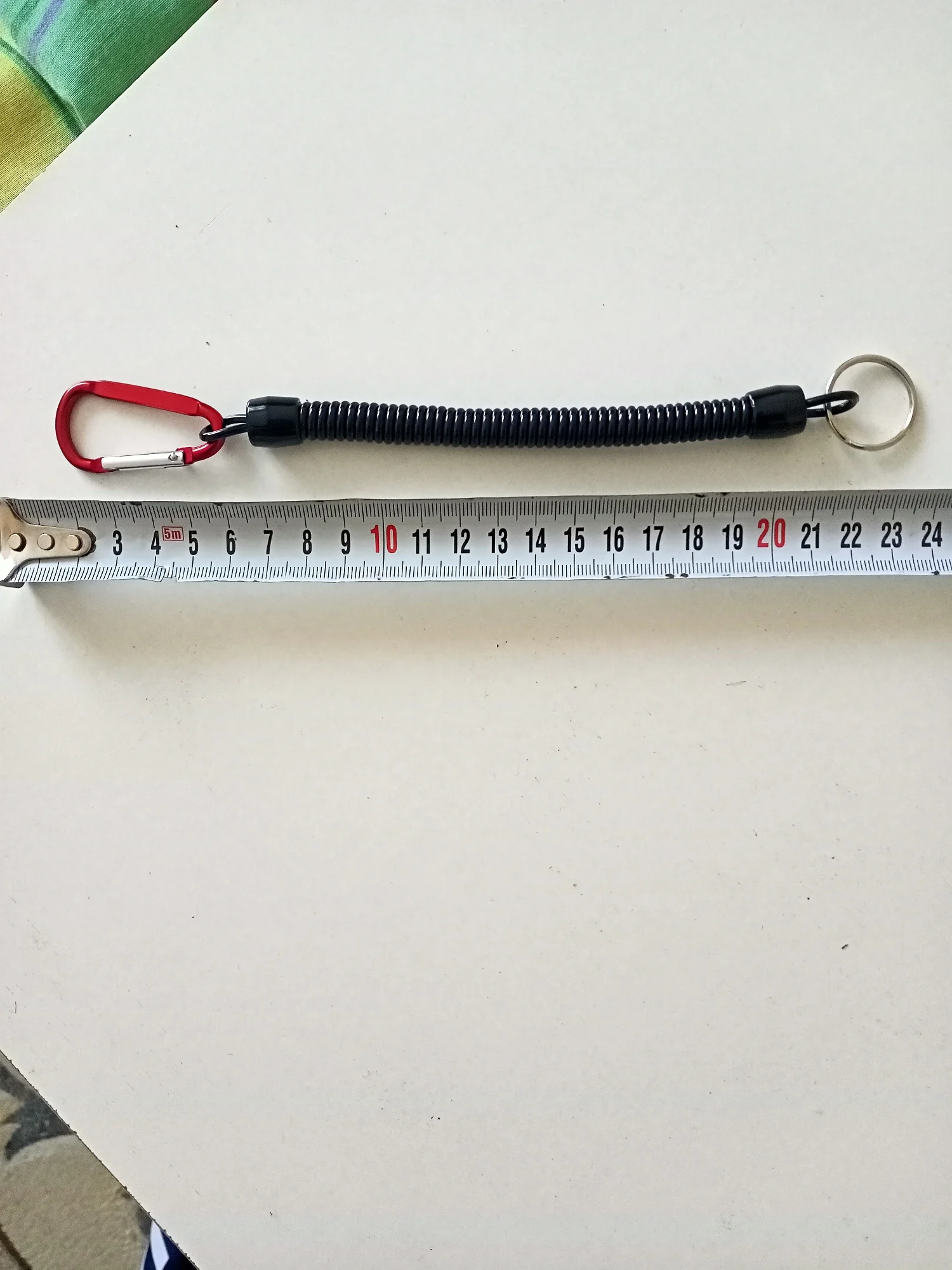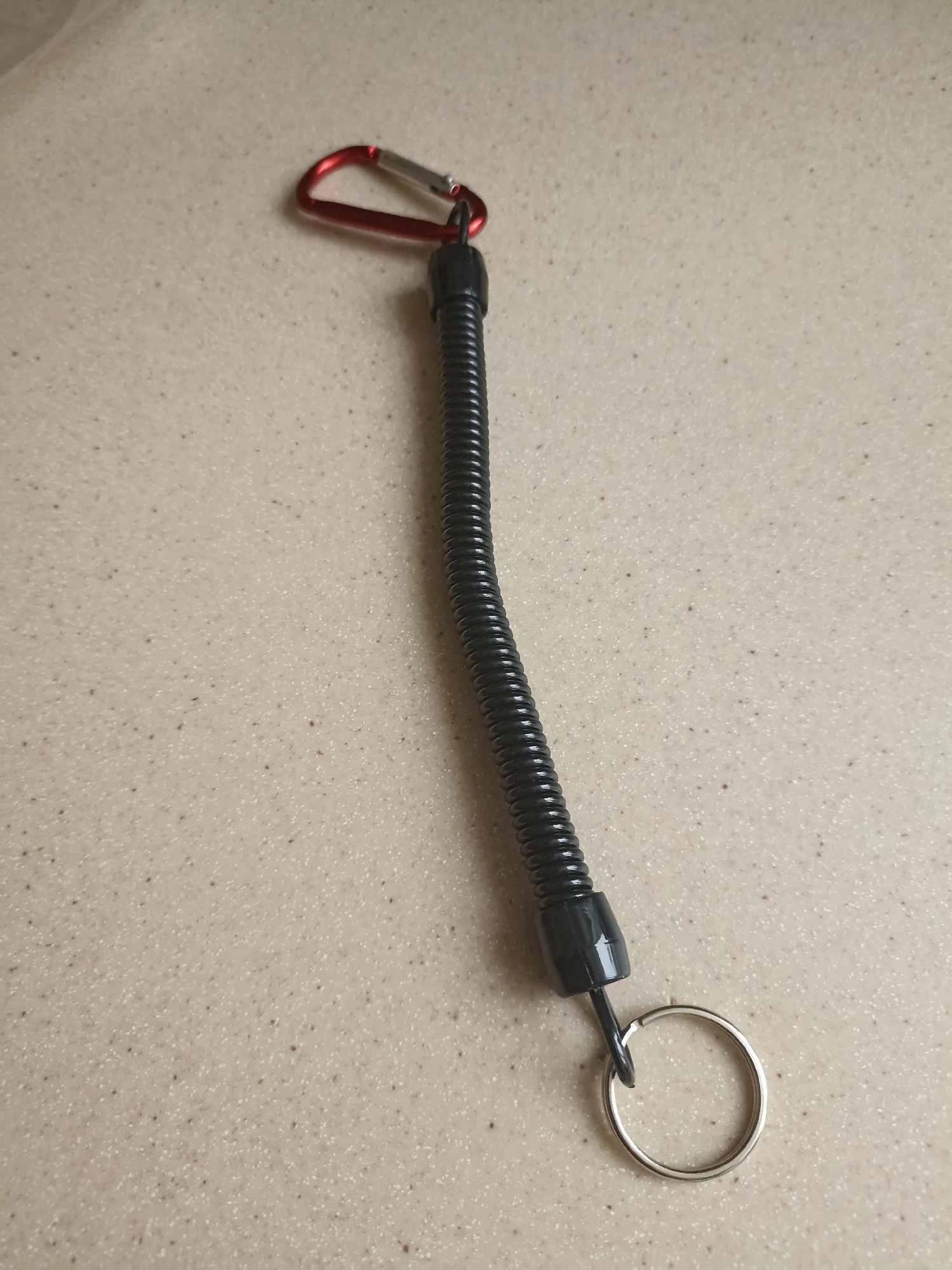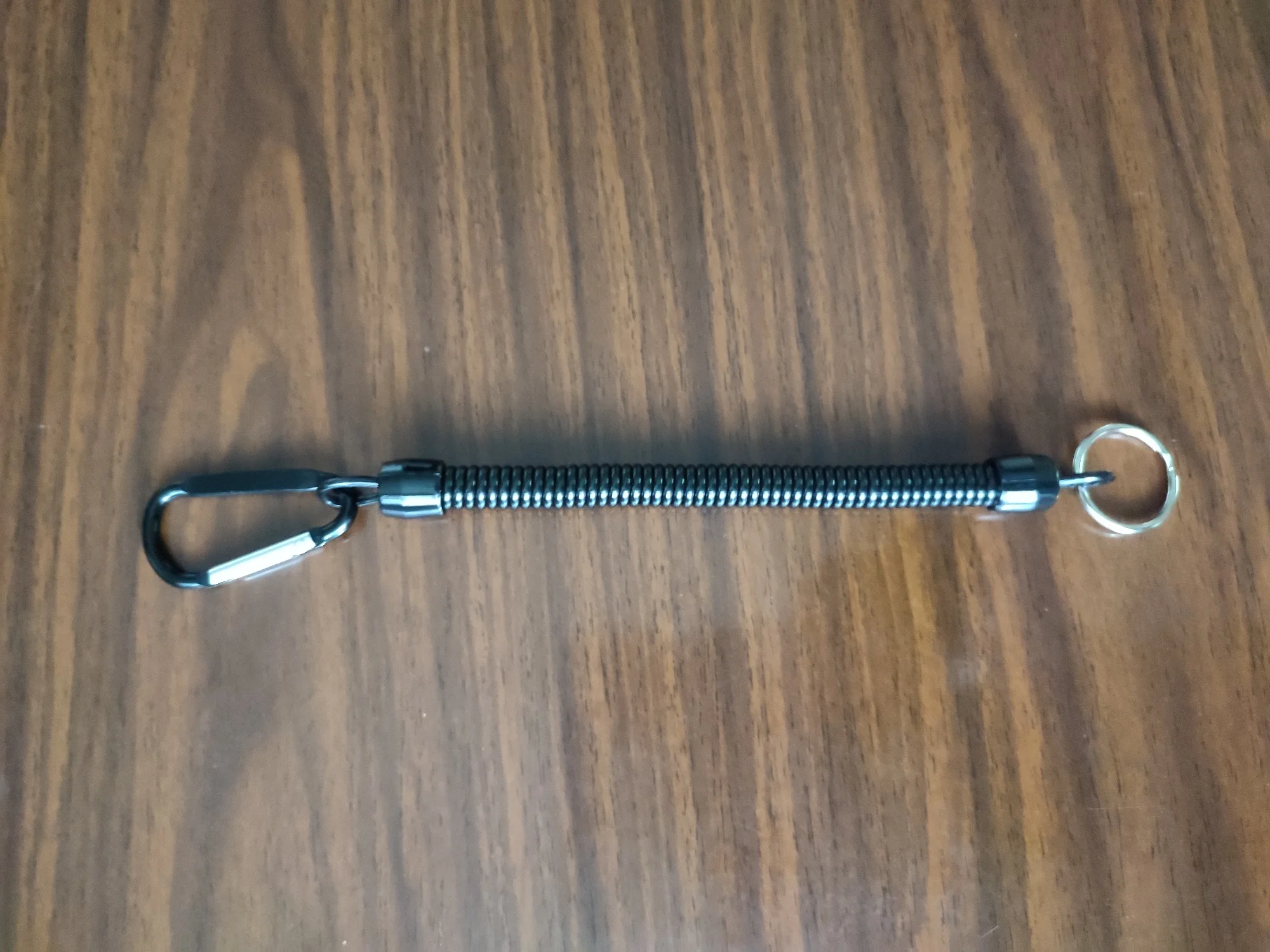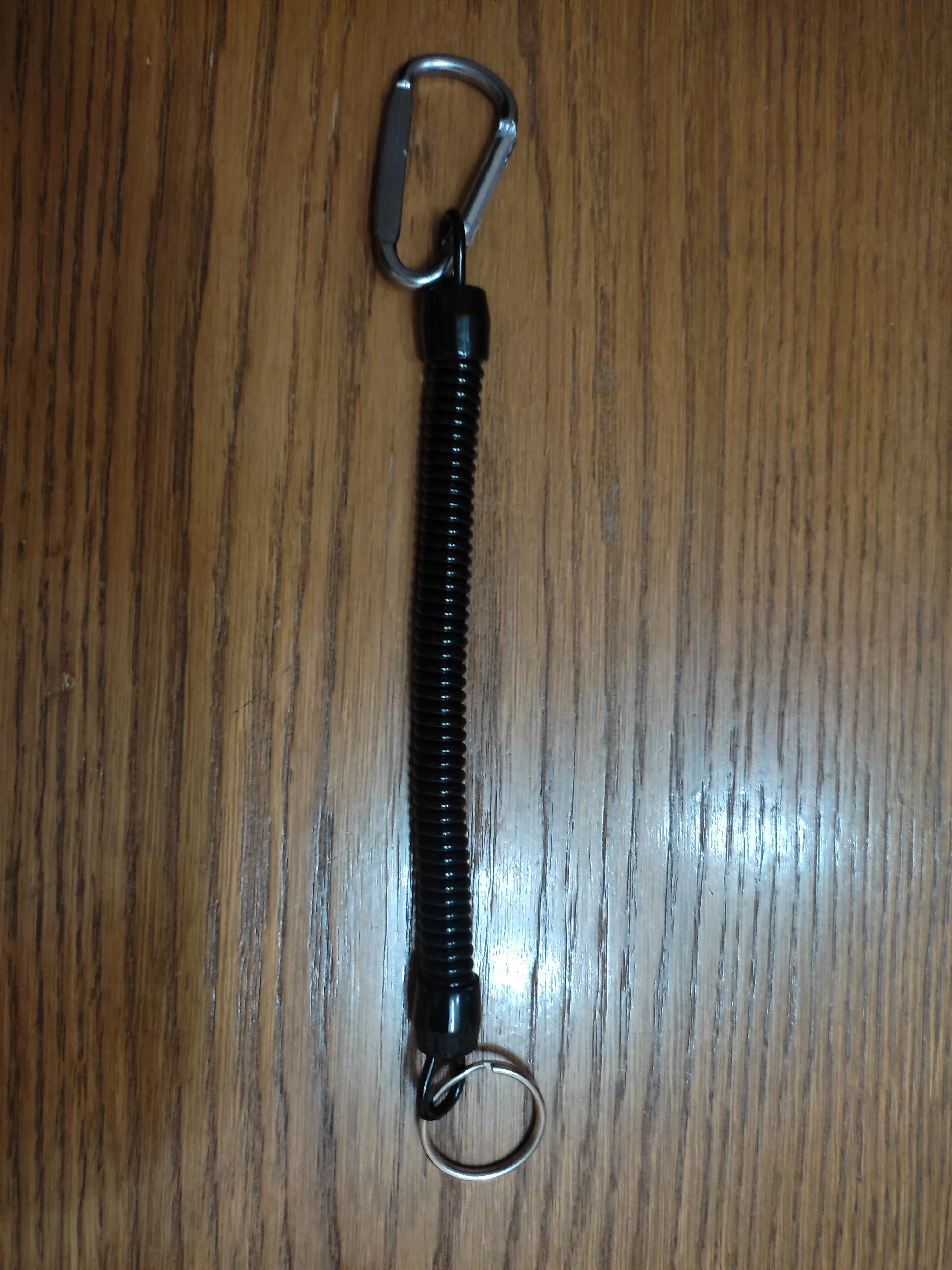 Хороший тренчик! Размер идеален для ножа. В свернувшемся состоянии длина 15 см, в растянутом-почти 80. Цельная полимерная спираль, концы которой сделаны пятлями и залиты в конечные колпачки.