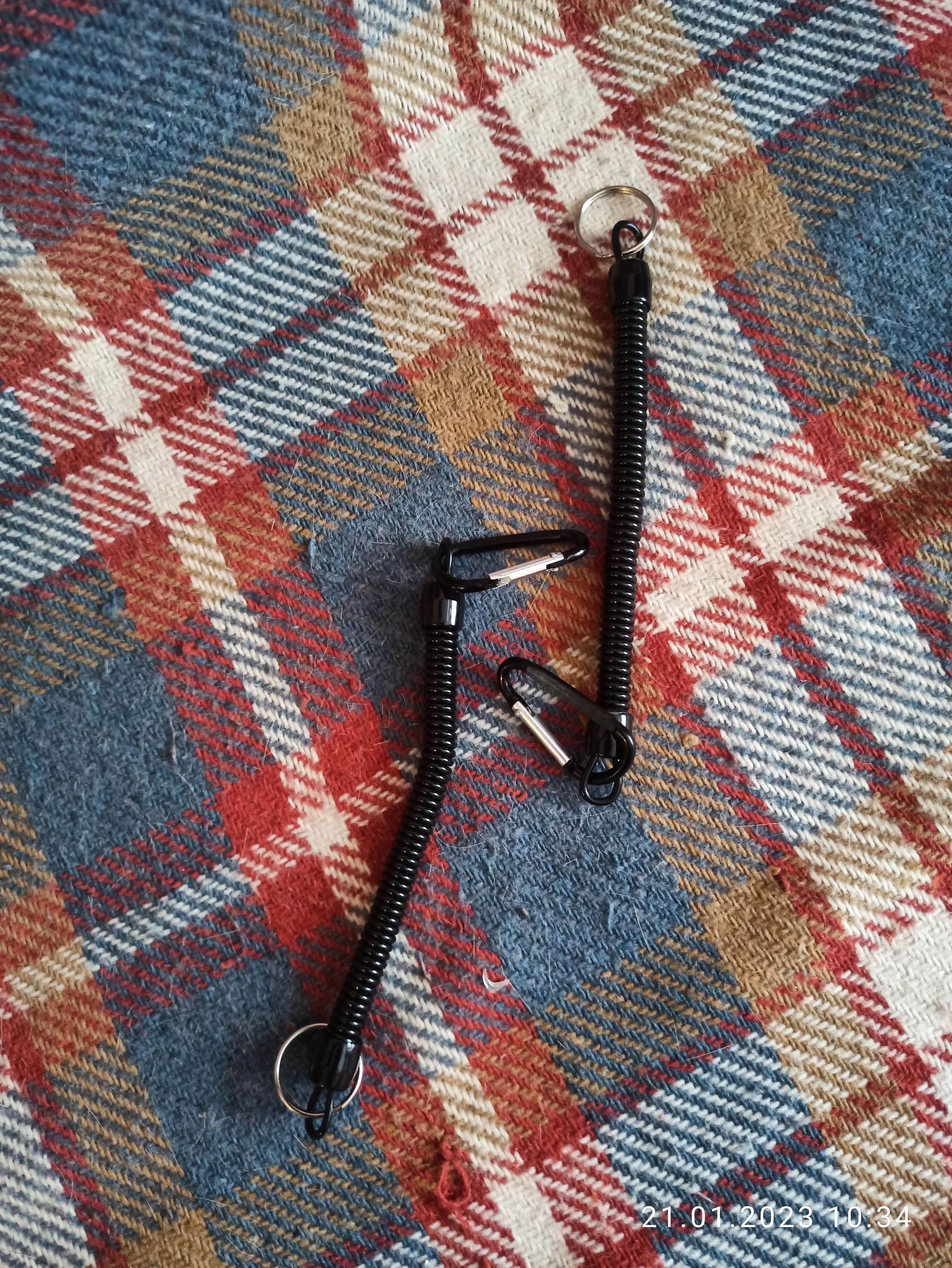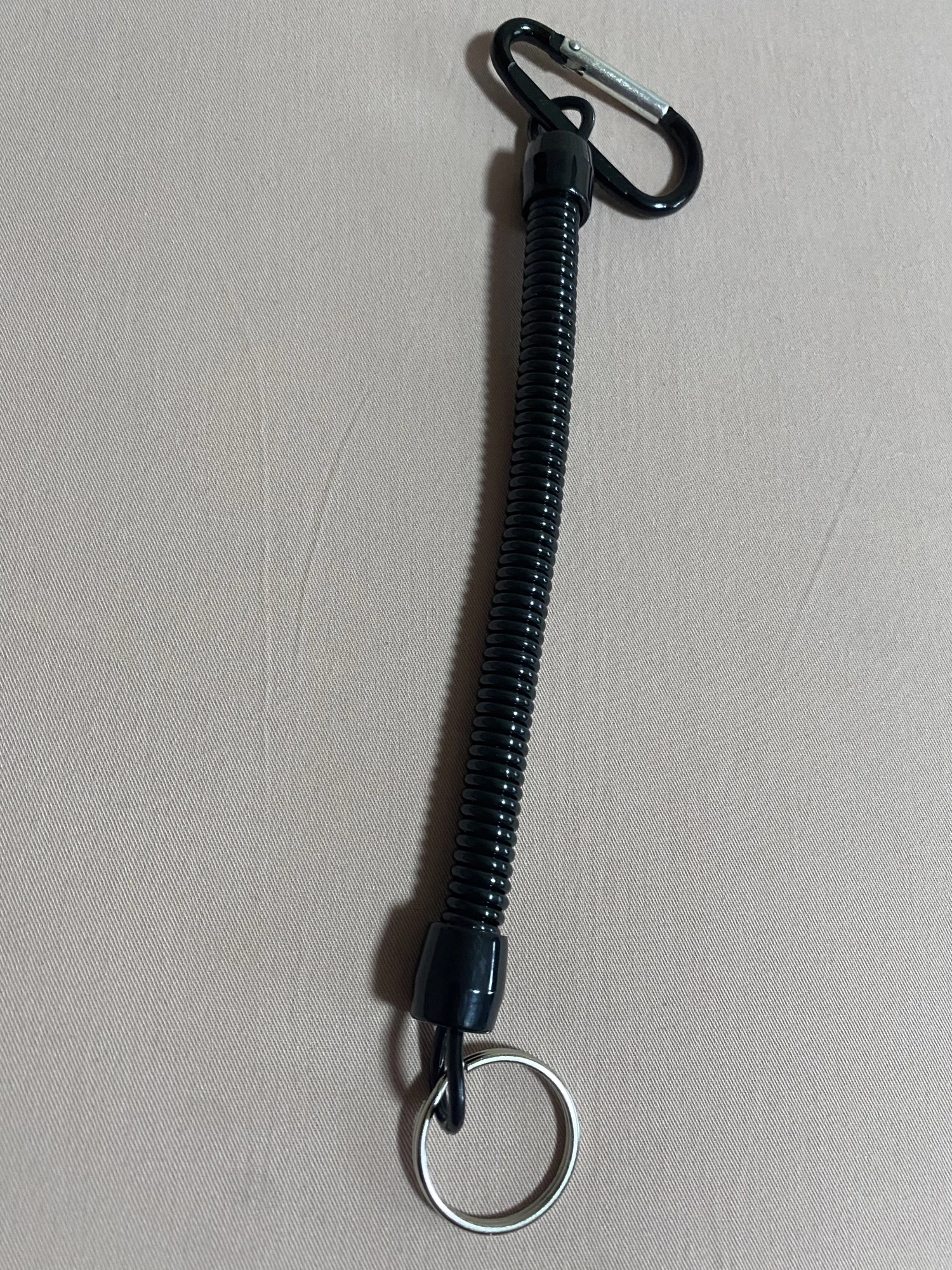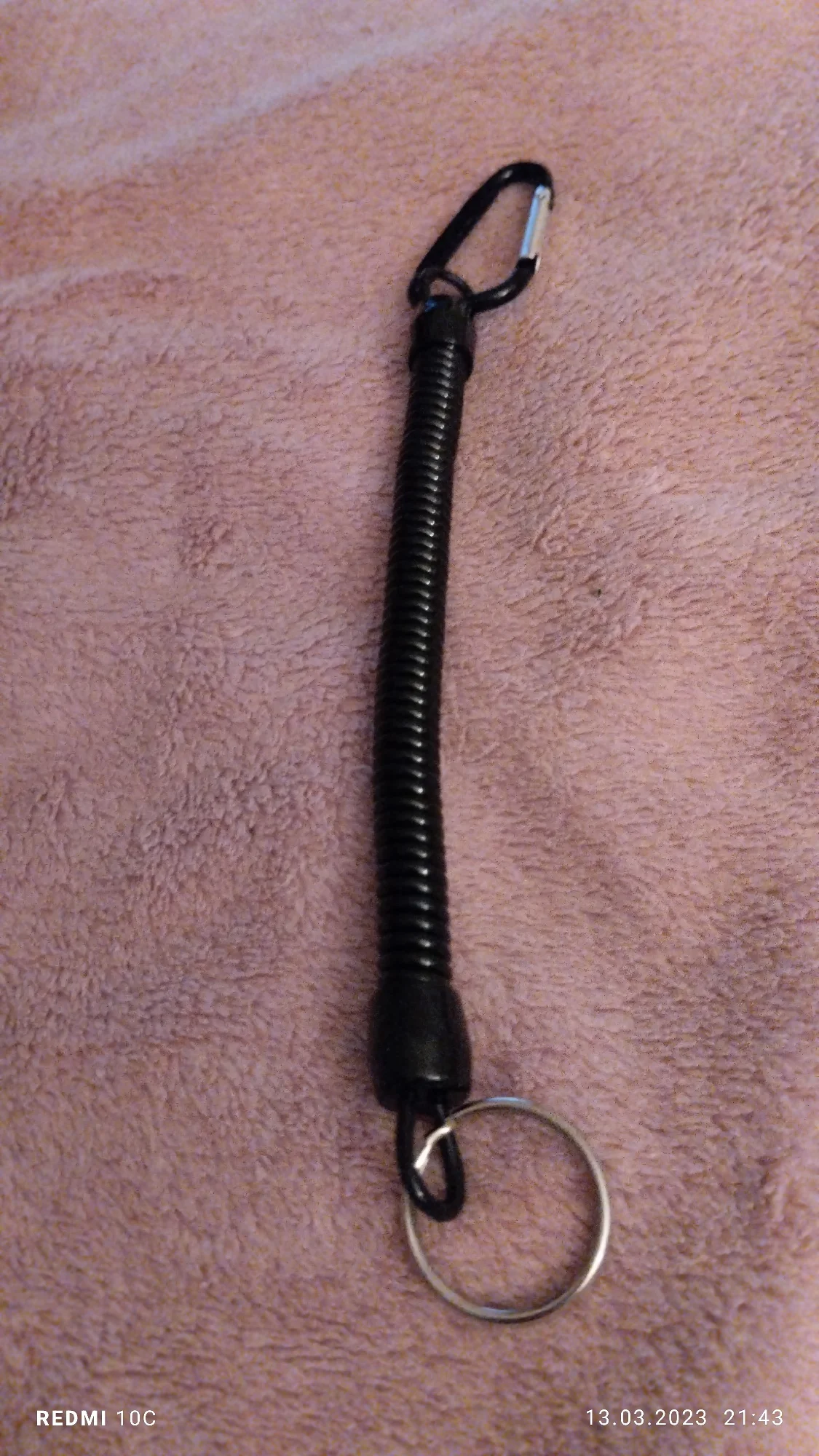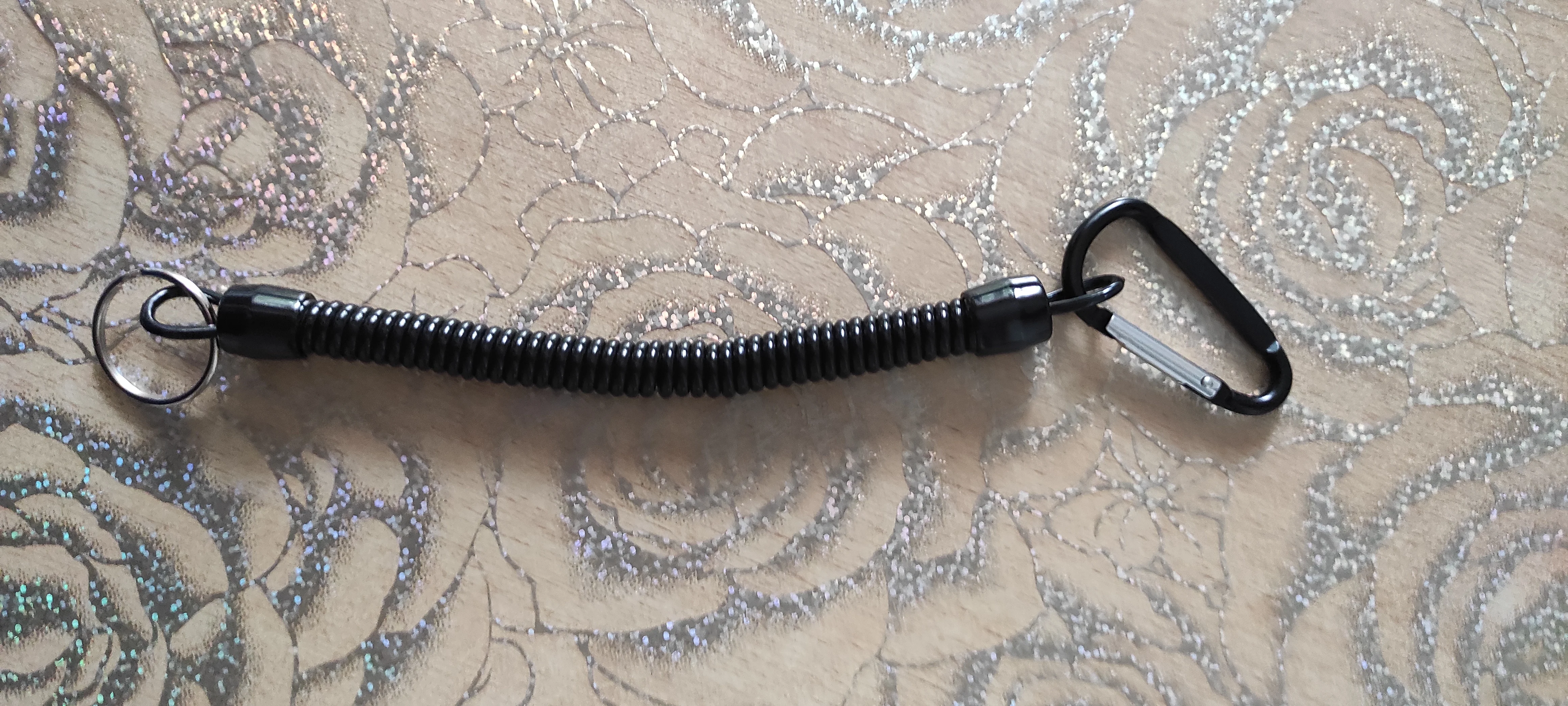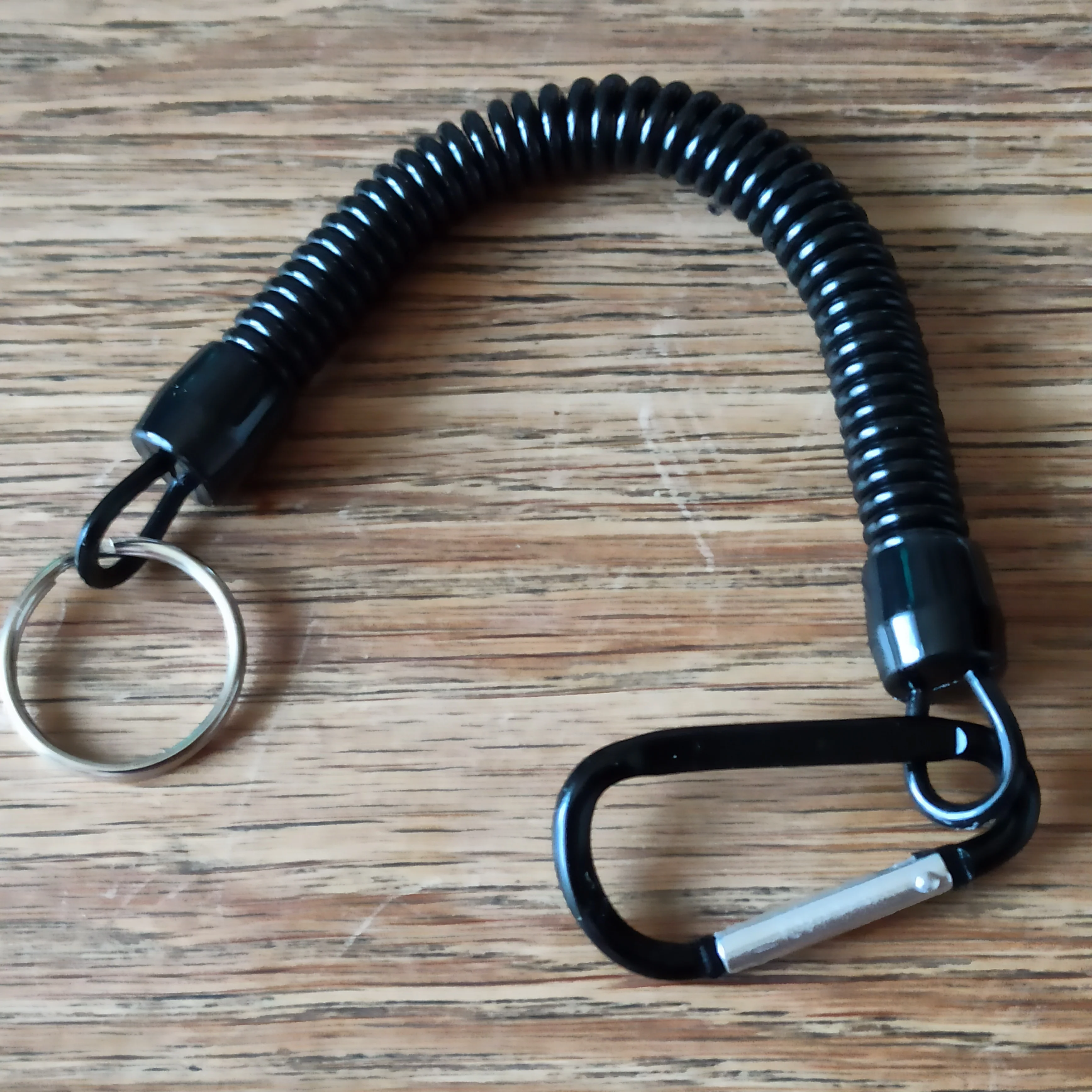 Хороший тренчик! Размер идеален для ножа. В свернувшемся состоянии длина 15 см, в растянутом-почти 80. Цельная полимерная спираль, концы которой сделаны пятлями и залиты в конечные колпачки.