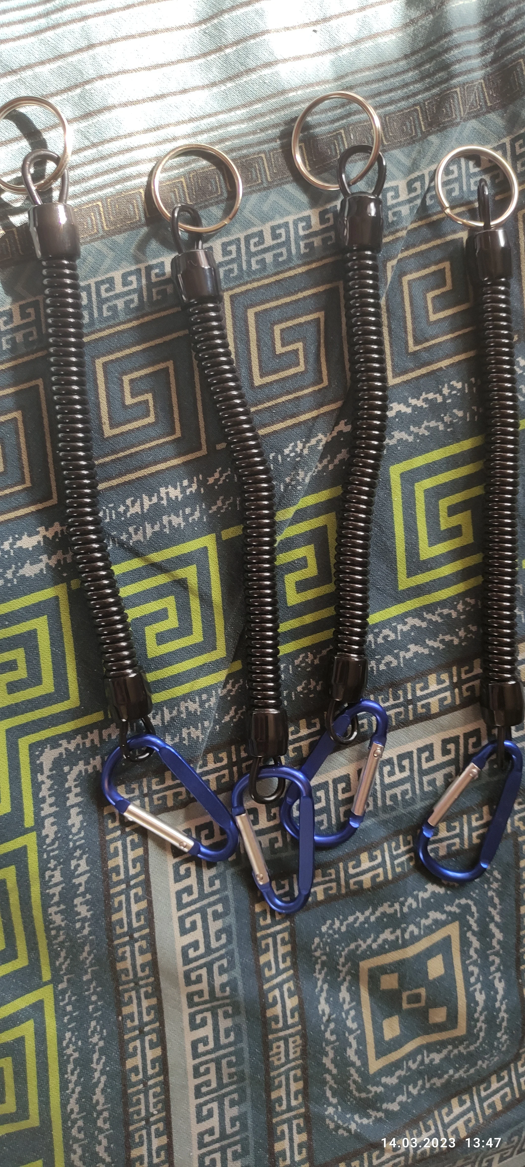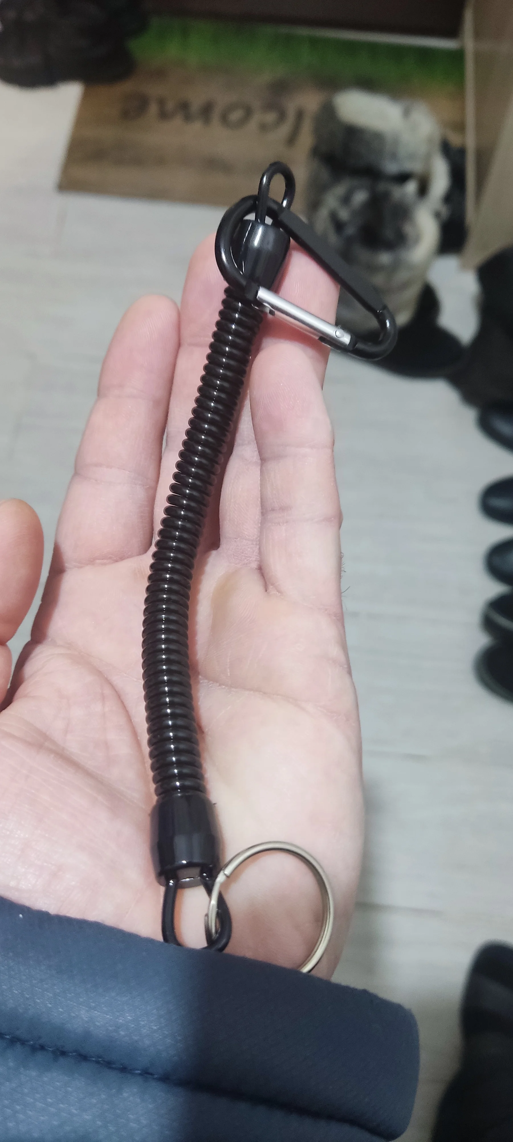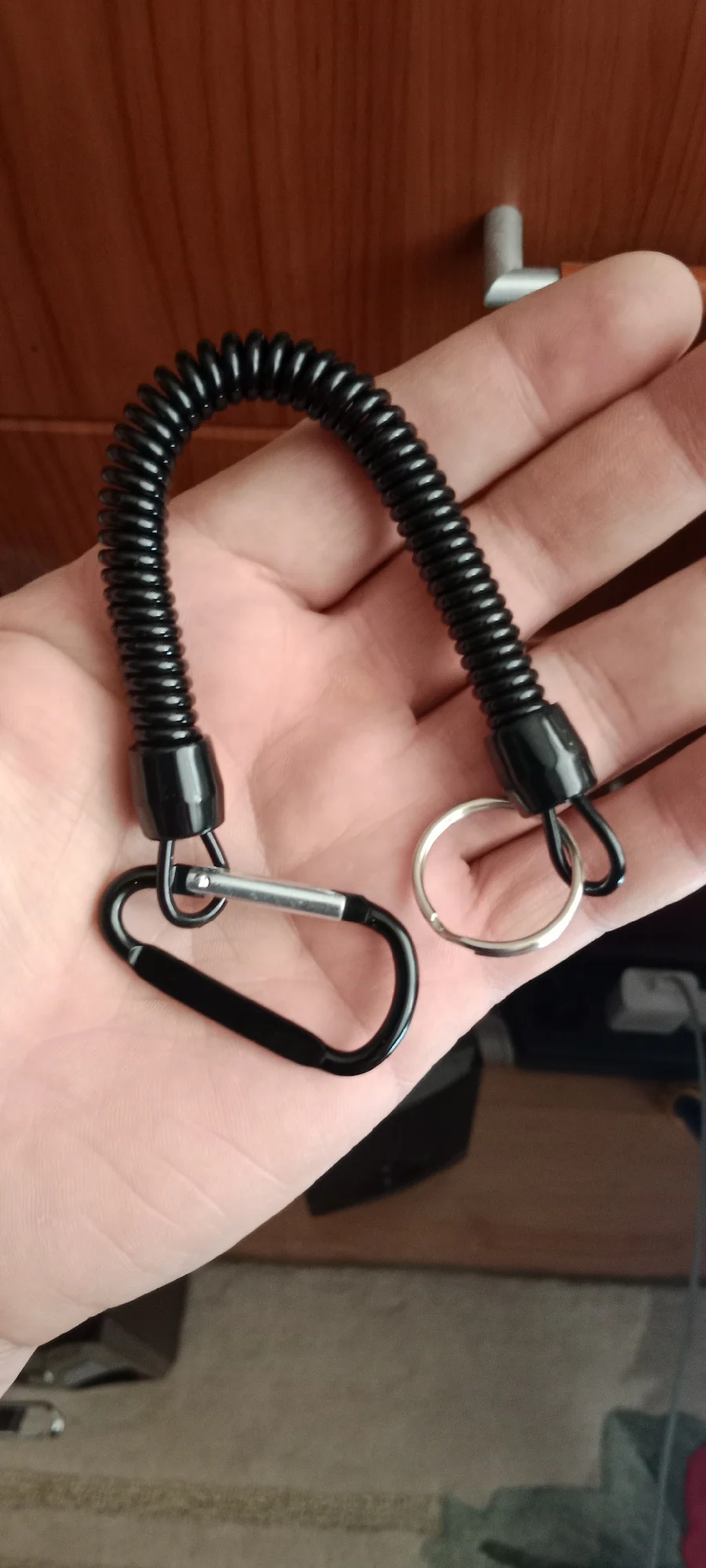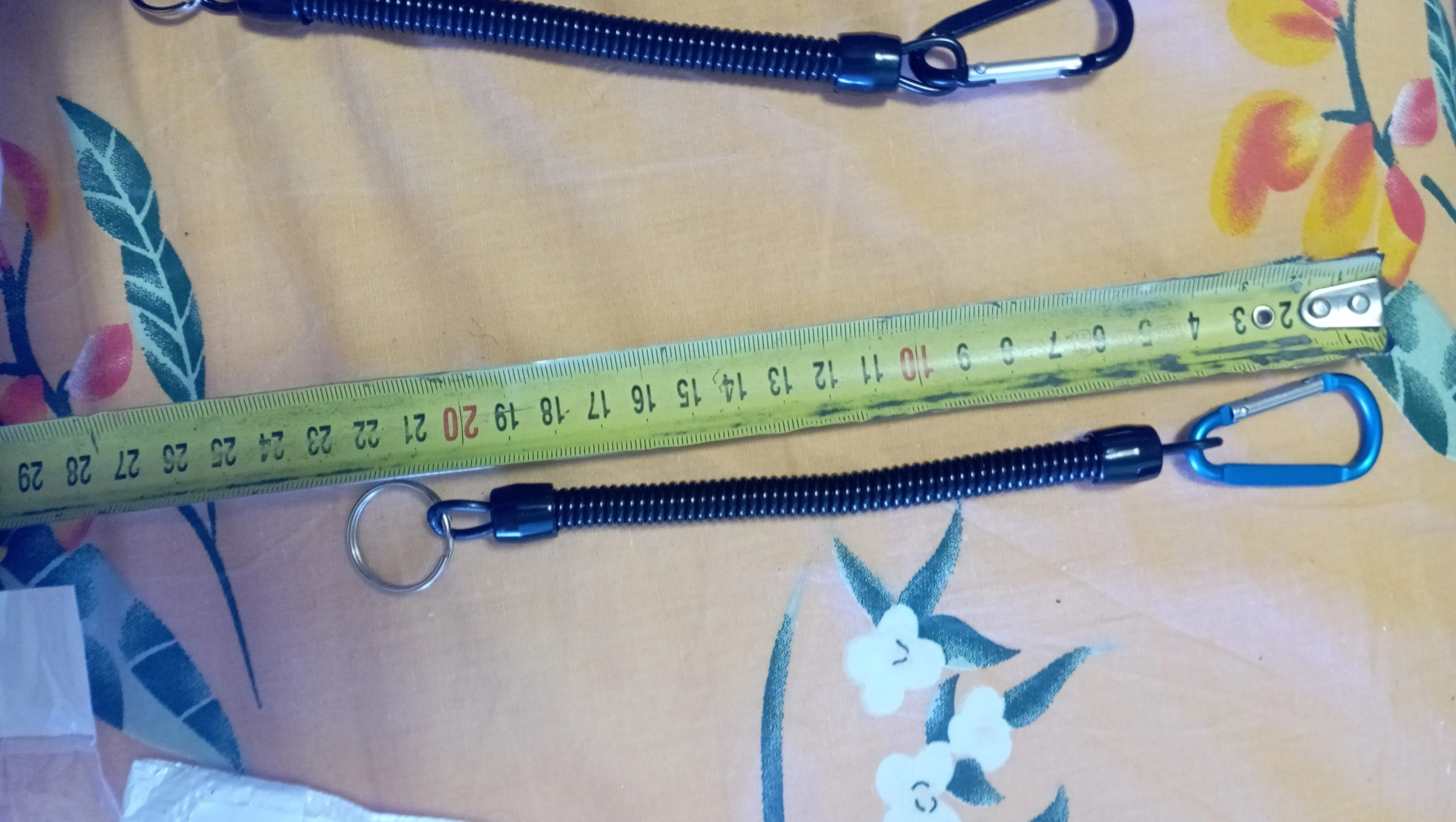 шнурки супер выглядит отлично размер на фото увидите растягивается на 90 см. карабин на пружине взял пристегивать всякий инструмент в лодке для рыбалки очень полезная штука, пришли быстро в сборной посылке, советую качество понравилось