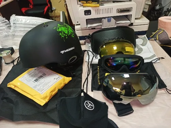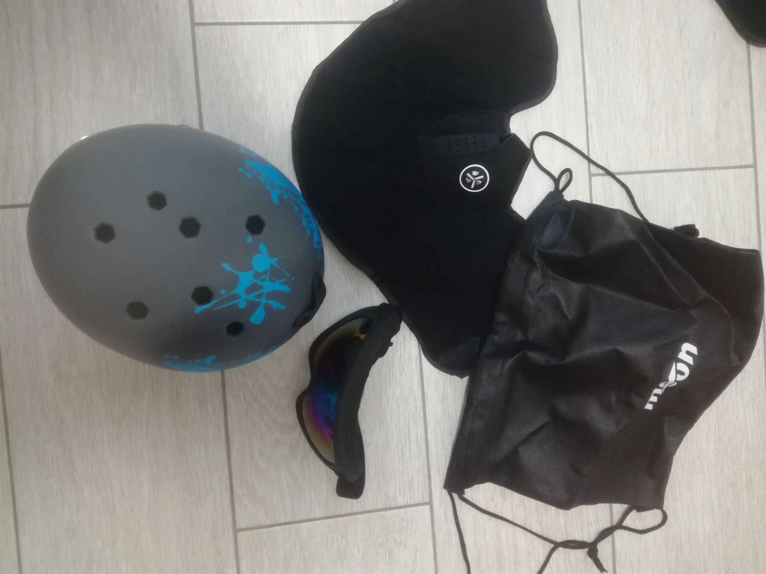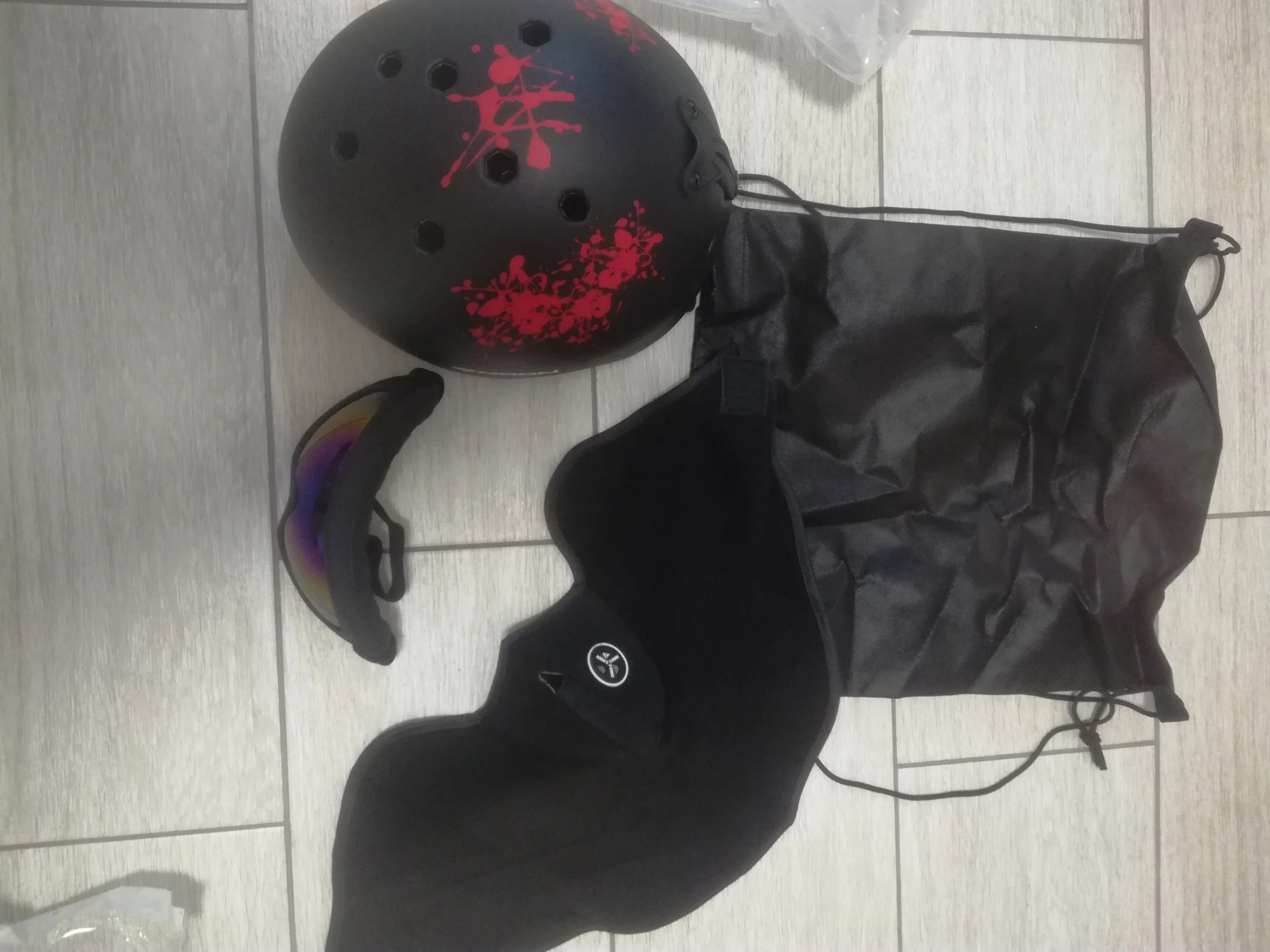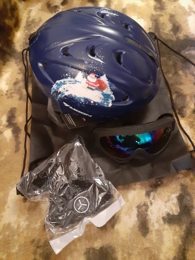 Заказ пришёл за 2 недели. Неплохой набор для катания. Очки конечно так себе, но на запас пойдут. Шлем без дефектов, хорошо упакован. На очках небольшие потертости, но тоже не страшно. Балаклава пахнет, но до первой стирки. В целом я довольна! Спасибо. Продавца рекомендую.