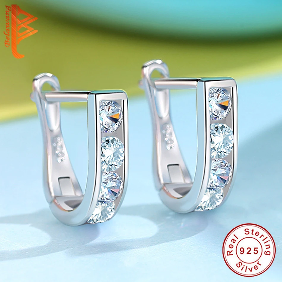 BELAWANG 2020 модные ювелирные изделия с драгоценными камнями розовый прозрачный кристалл серьги в виде колец, 925 стерлингового серебра серьги для девочек ребенка; Семейный комплект одинаковых футболок вечерние подарок
