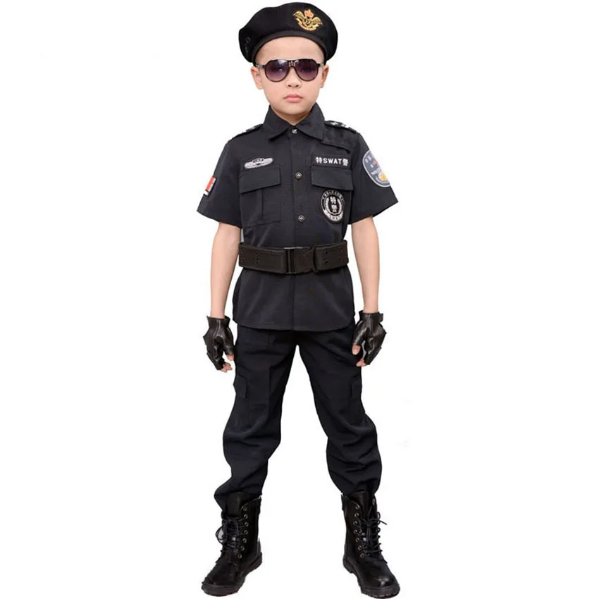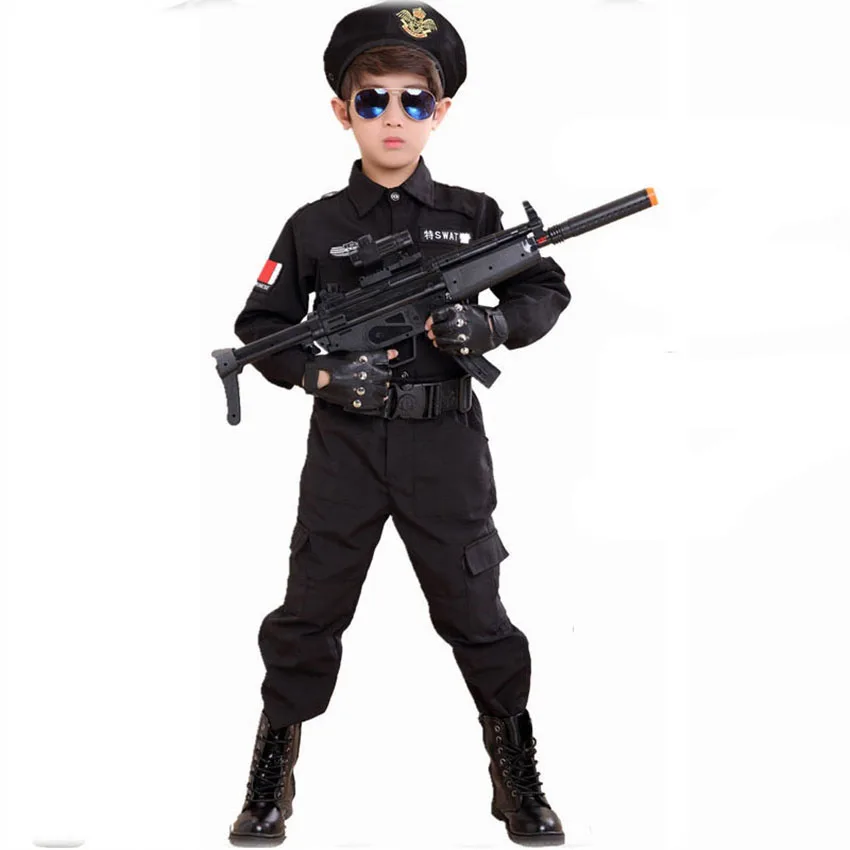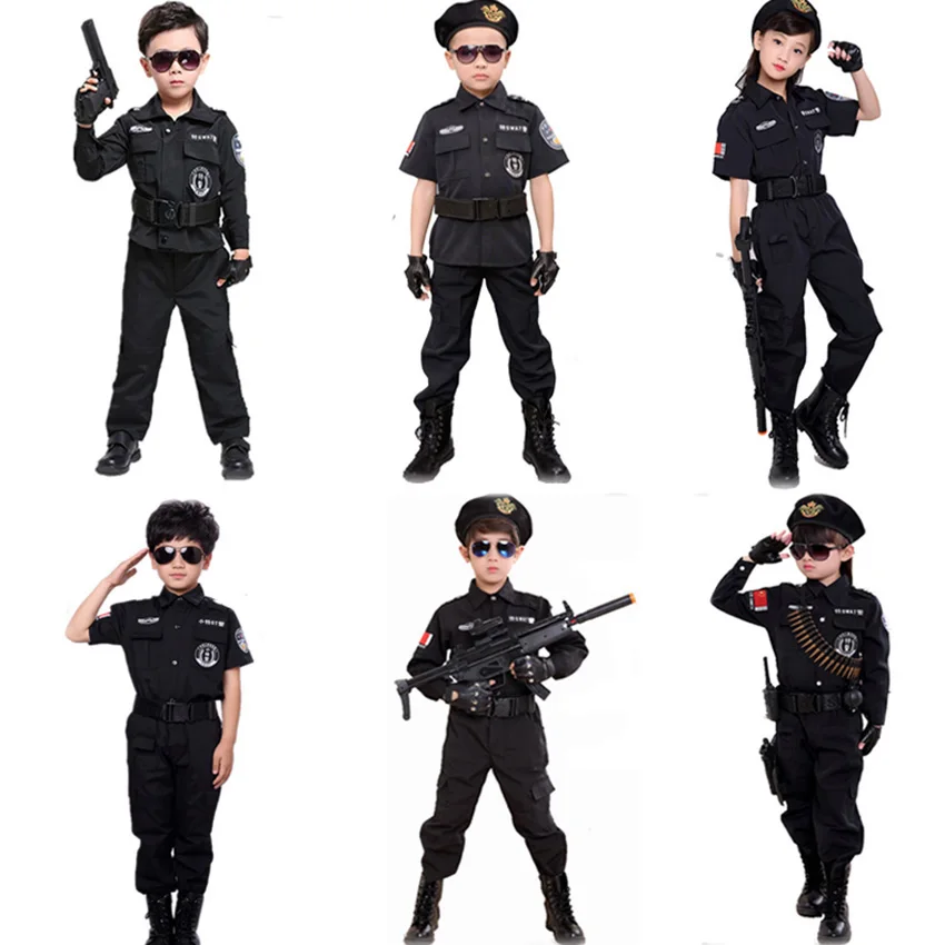 110-160 см высокое качество детский Косплей спецназ полицейская Униформа безопасная дрель карнавальвечерние спецназ детский сад боевые тактические костюмы