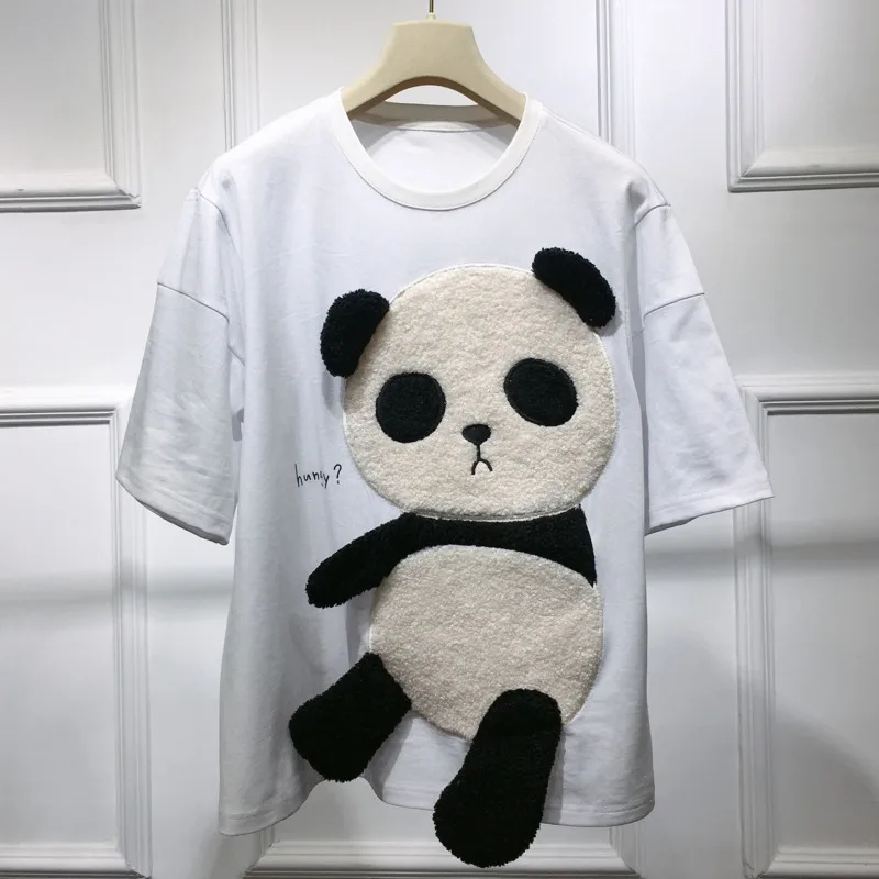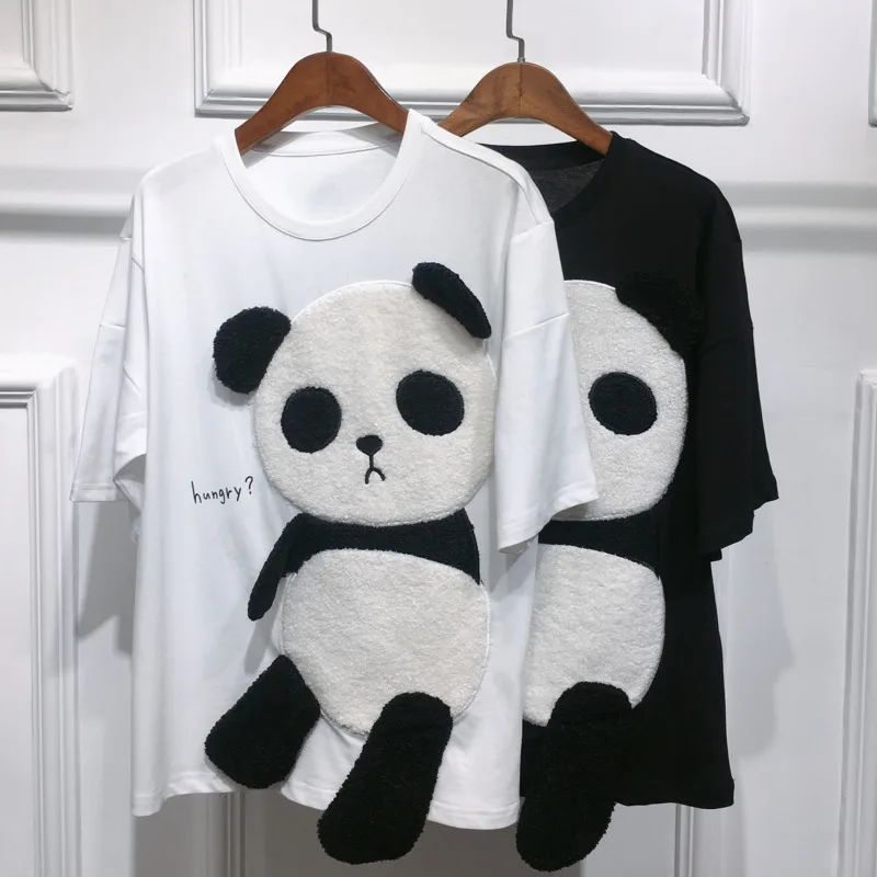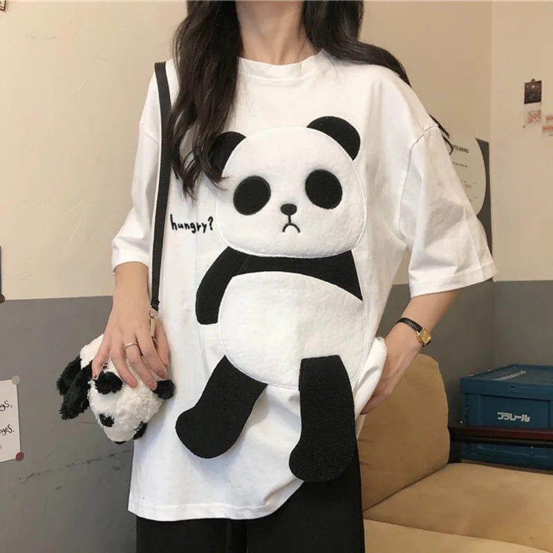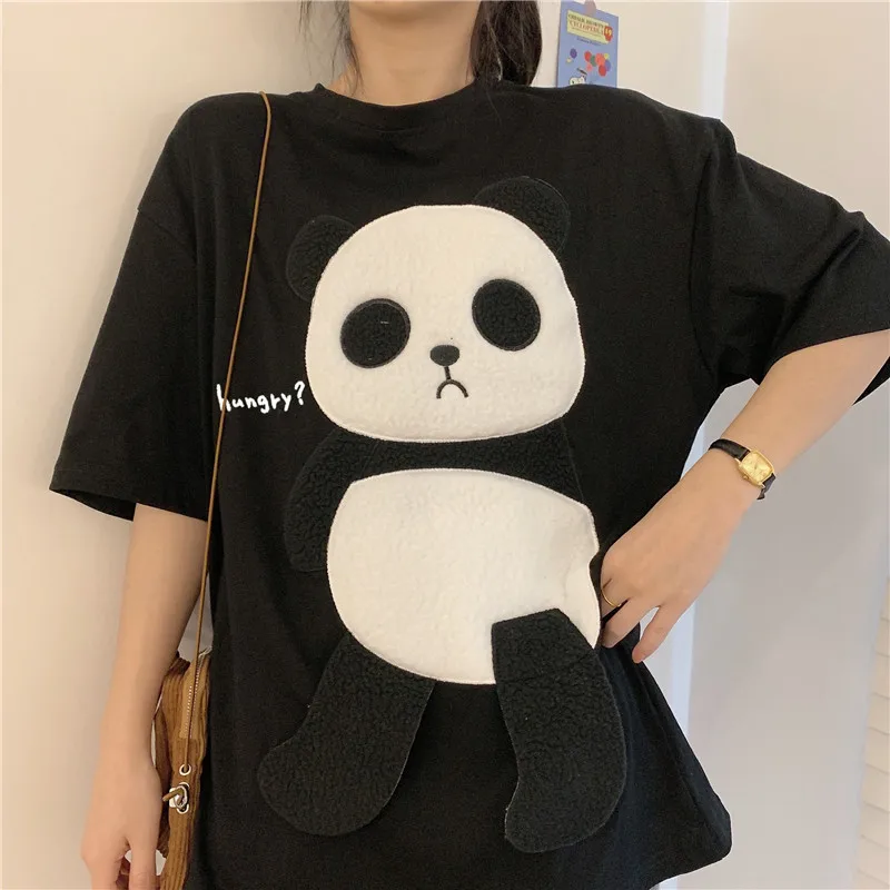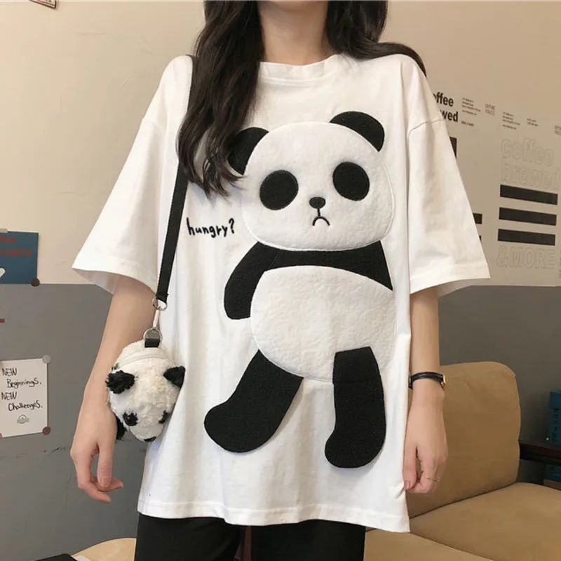 Футболка женская с рисунком панды, Свободный Топ в стиле хип-хоп, Повседневная в уличном стиле
