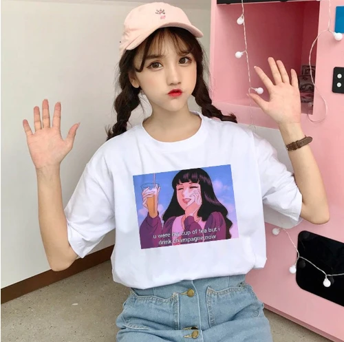 Белая футболка Tumblr 90s Is Ocean Wave, милые летние топы Harajuku...