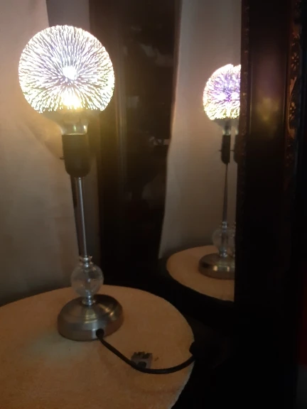 Лампа замечательная, но переплетенная. Он не входит в держатель. Нить переплетена. Mqar он работает нормально и красиво блестит!