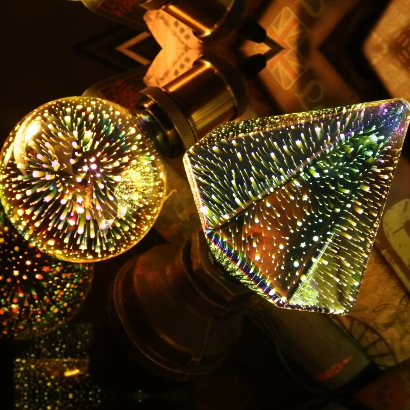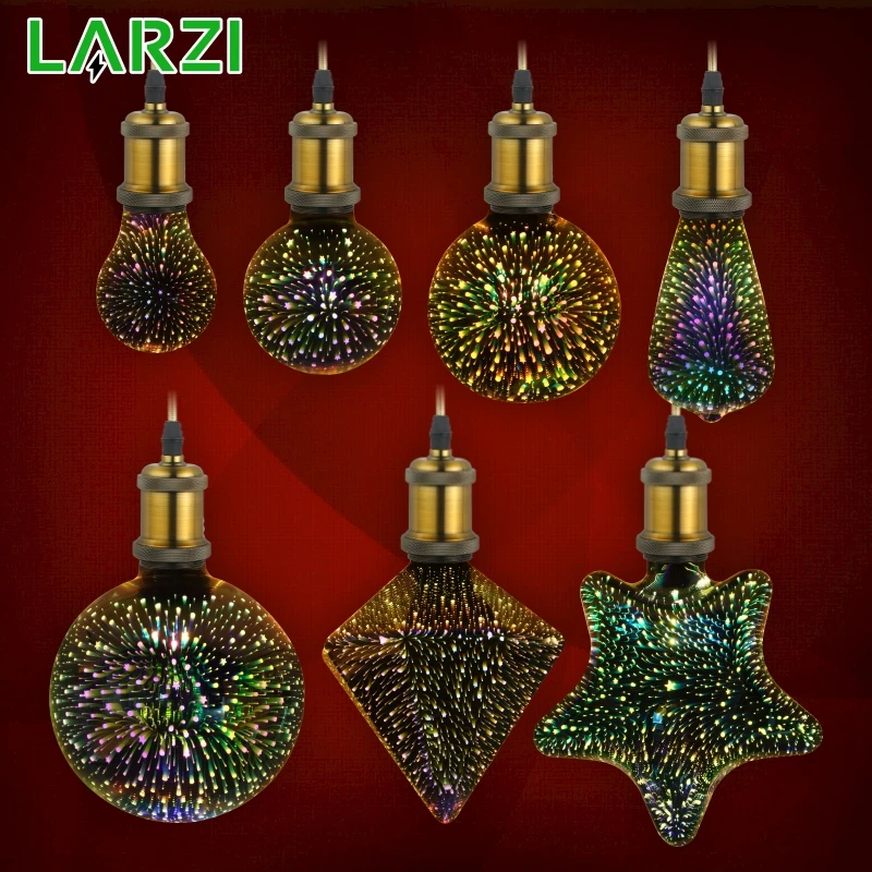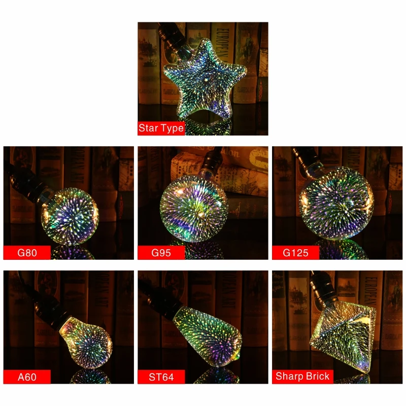 3D Светодиодная лампа, фейерверк, E27, винтажный ночсветильник Эдисона, 110 В, 220 В, A60, ST64, G80, G95, G125, праздничное украшение