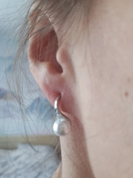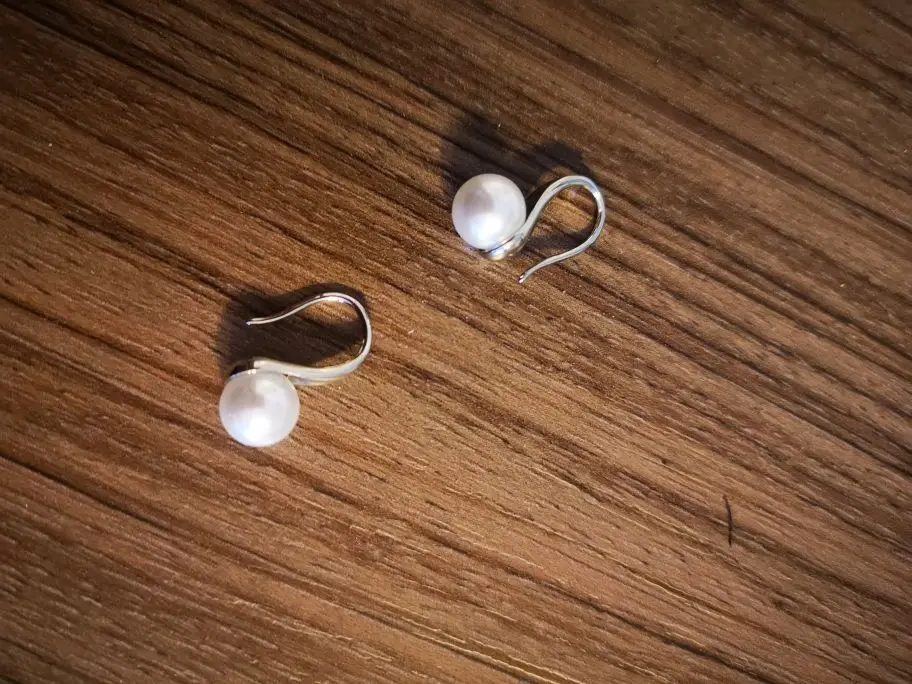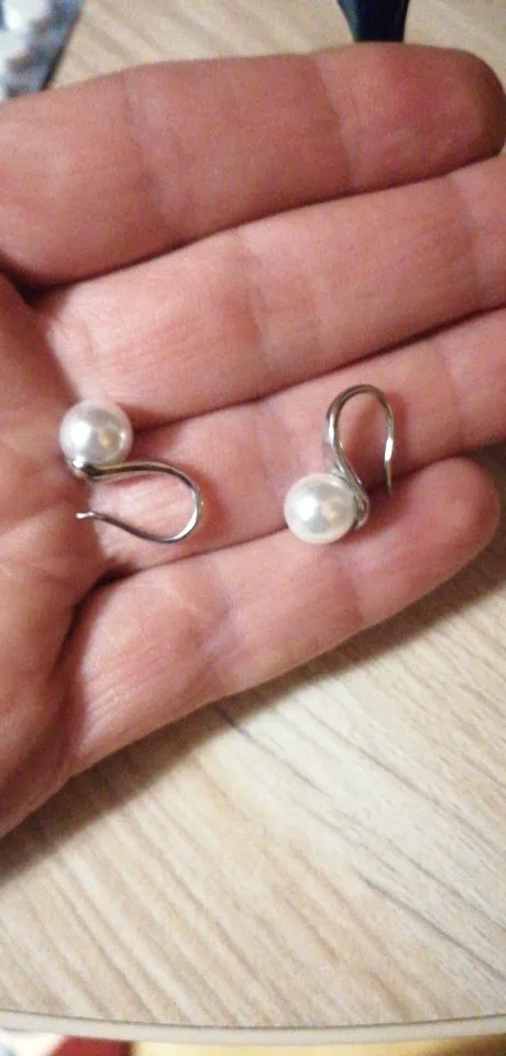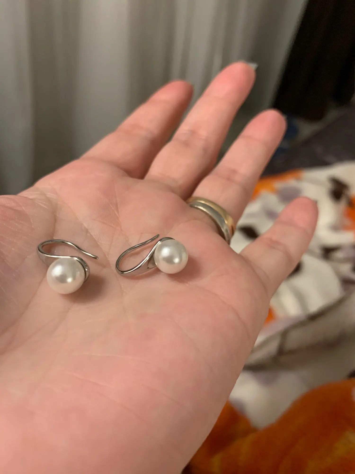 Милые маленькие серьги, как описано на фотографиях. Я надеюсь, что это настоящее серебро и натуральный жемчуг. Доволен.