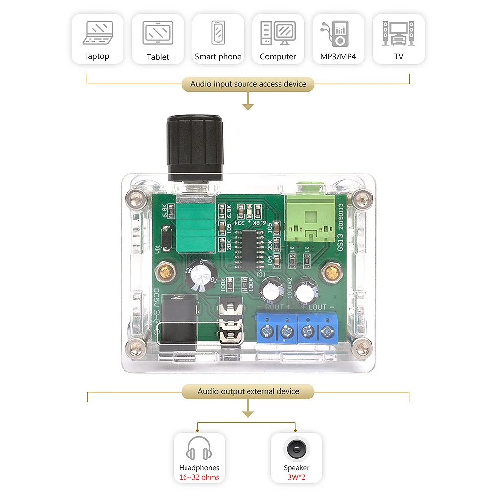 Портативный мощный стереоусилитель AIYIMA, USB 5 В, 2x3 Вт, наушники, Amp AUX 3,5 мм, усилитель с чехлом сделай сам для домашнего кинотеатра