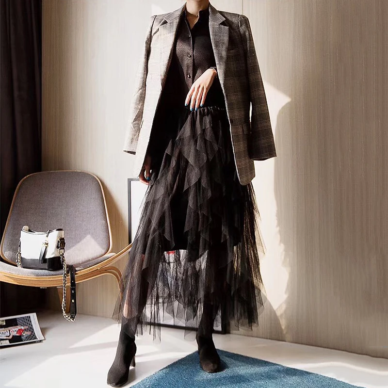 Женская Асимметричная сетчатая юбка TWOTWINSTYLE, черная элегантная юбка до щиколотки с высокой талией в Корейском стиле, 2020