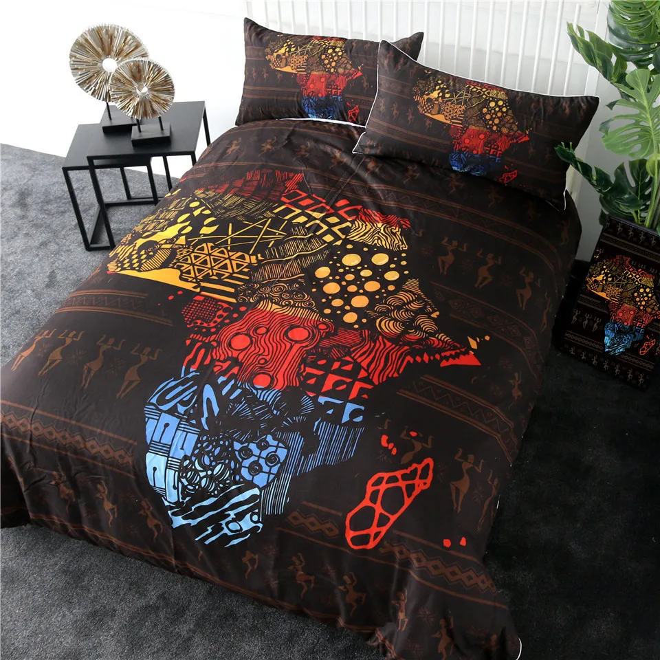 Постельные принадлежности Outlet, Африканская Карта, постельные принадлежности, набор геометрических пододеяльников, набор в стиле ретро, экзотический домашний текстиль, древний Комплект постельного белья из 3 предмето