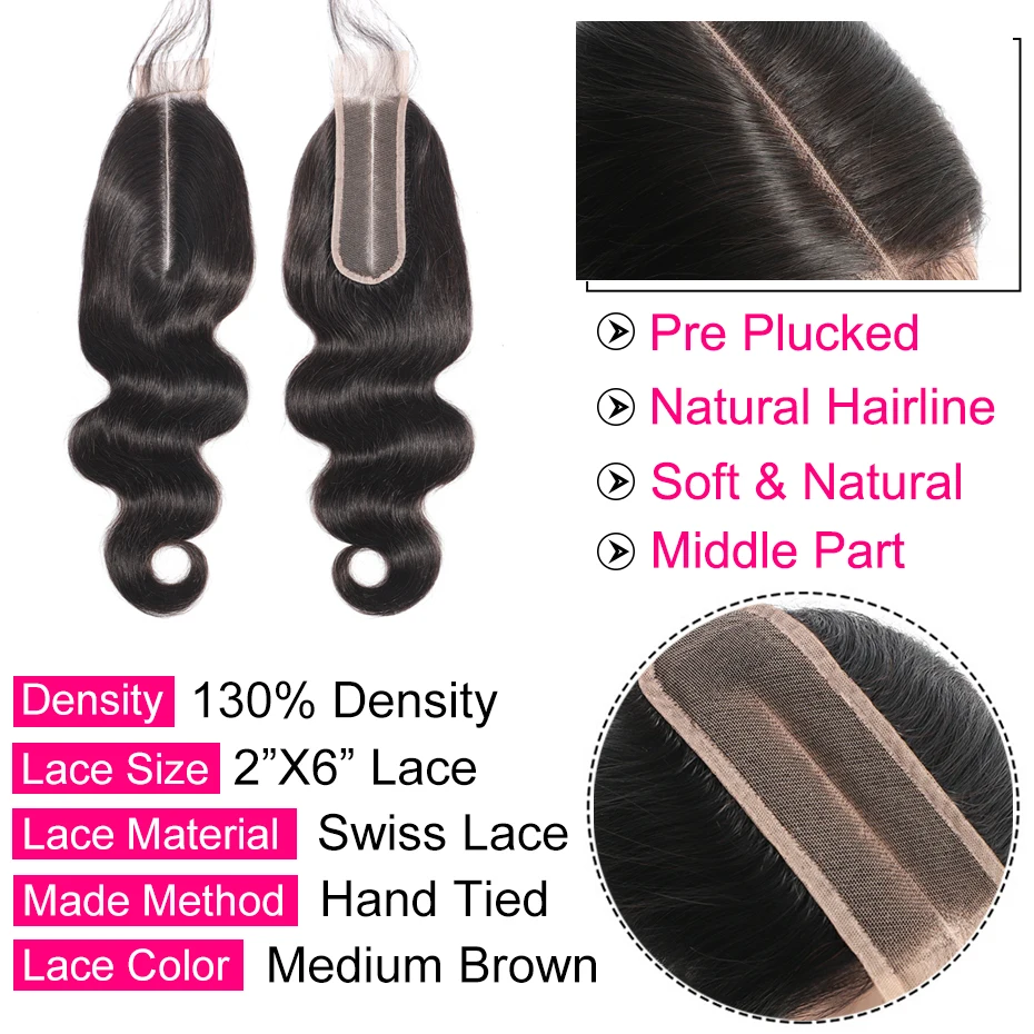 Набор волнистых пряди чков с застежкой Gabrielle, бразильские человеческие волосы, предварительно выщипанные 2x6, кружевные застежки и пряди, натуральные волосы Remy