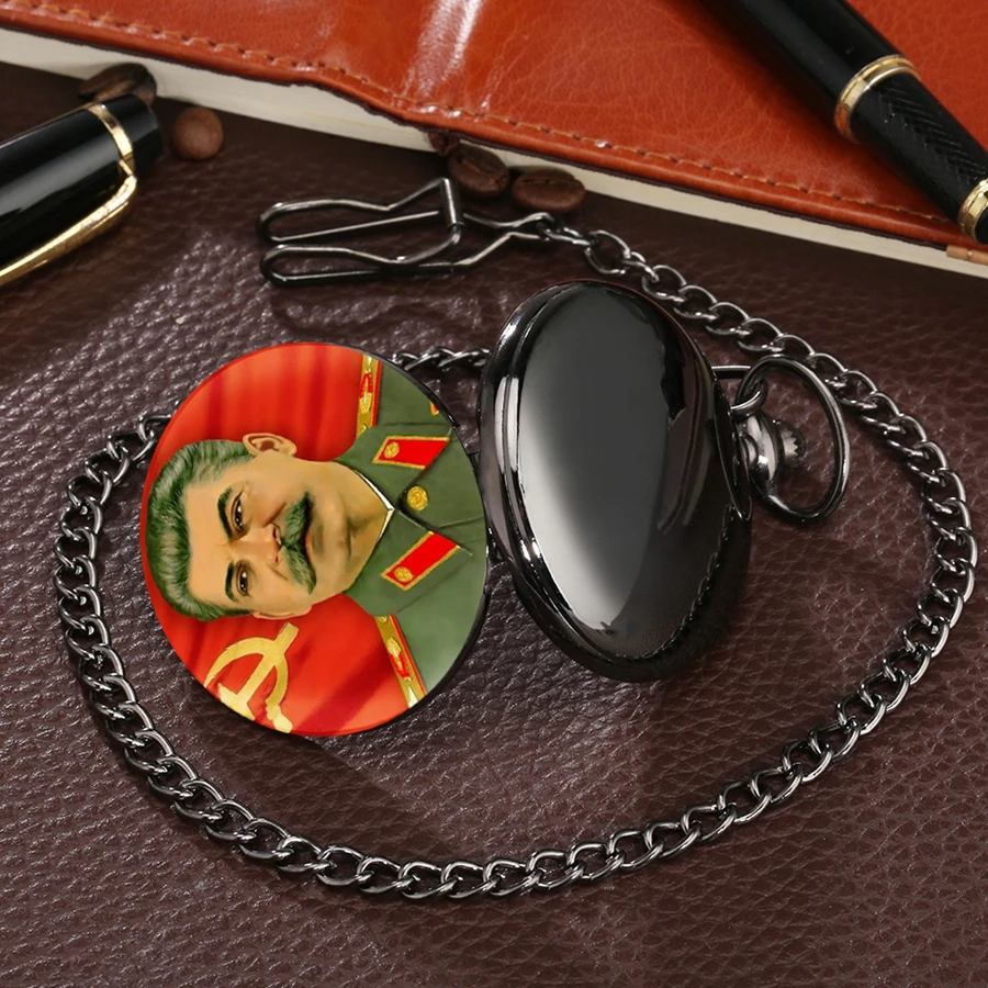 Роскошные Серебристые кварцевые карманные часы с серебристым портретом Сталина лидера России с цепочкой и подвеской на цепочке для мужчин и женщин, подарок