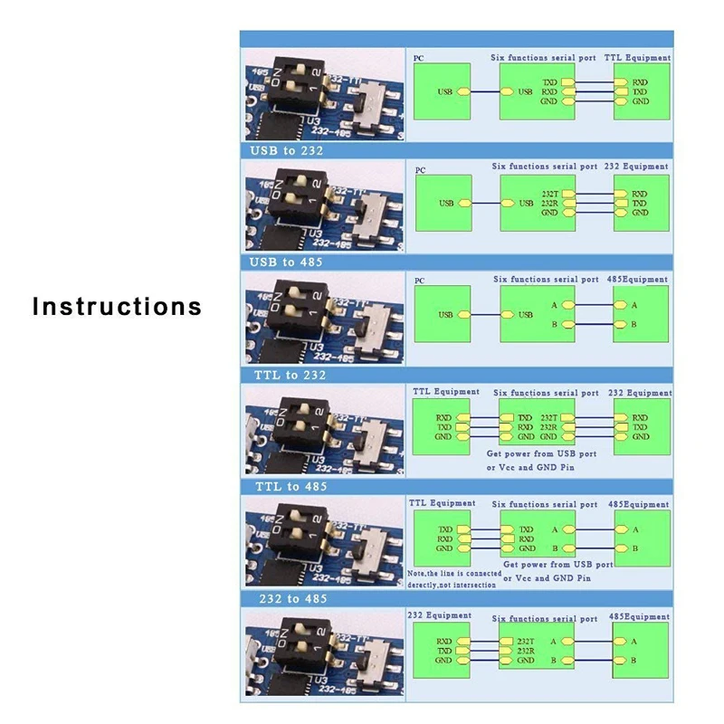 Преобразователь USB в UART, преобразователь USB в TTL RS485 RS232 TTL в RS232 RS485 RS232 на RS485 3,3 В, 5 В, выход 6 6 в 1, последовательный модуль USB-адаптера