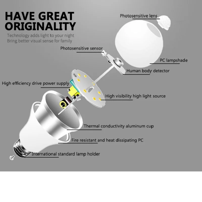 Эта лампа встроена в датчик PIR и датчик освещенности, она автоматически выключается в дневное время и включается ночью, когда обнаруживает движения.