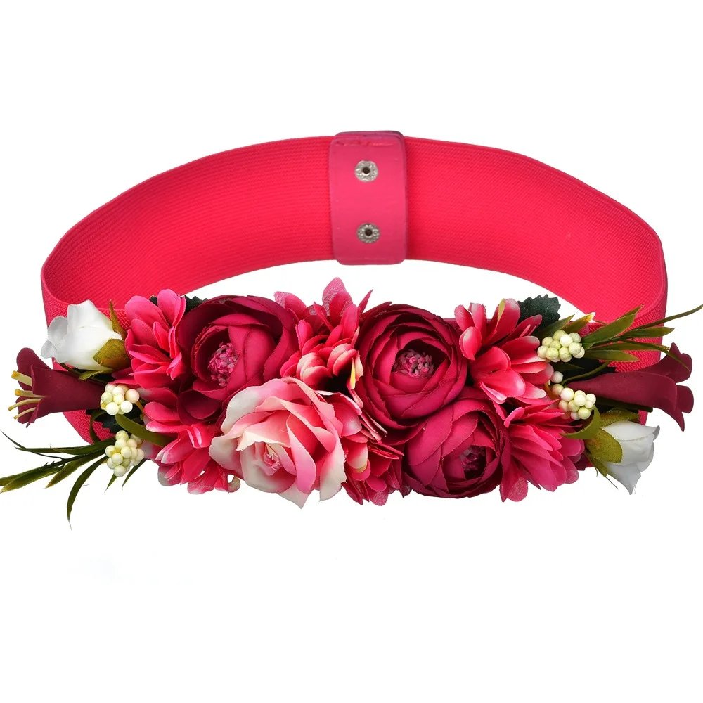 Модный женский эластичный широкий пояс-корсет для женщин, тонкий пояс с инкрустированным цветком и кристаллами BW03