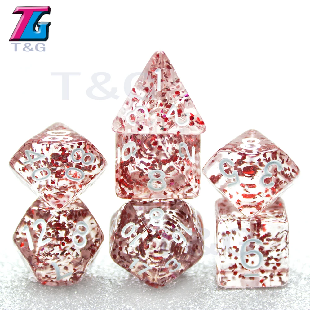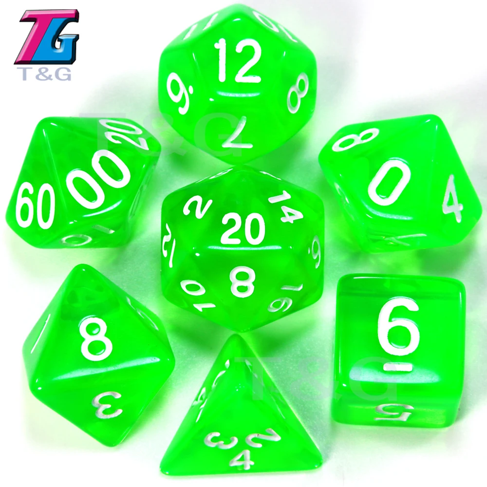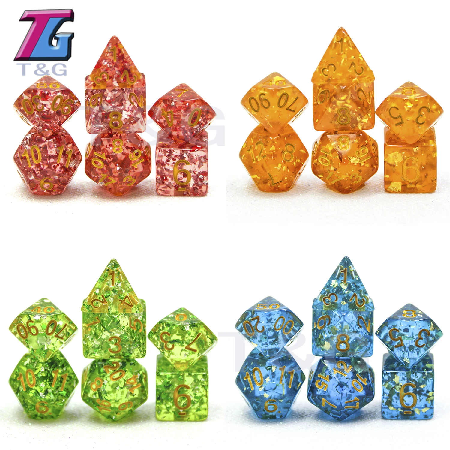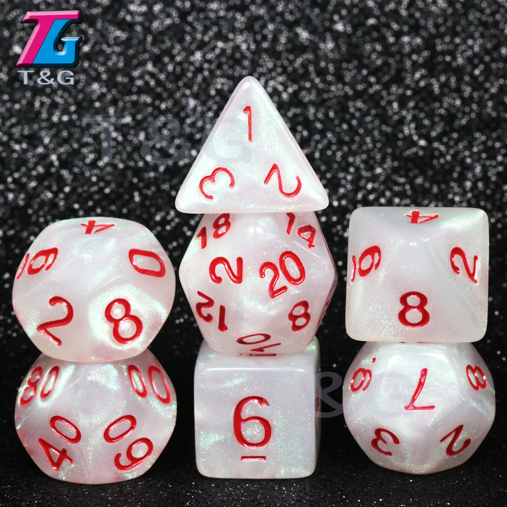 Dnd Rpg TRPG 7 шт./лот Прозрачный блестящий набор цифровых игральных костей D4,6,8,10,10%,12,20 для настольной игры многогранные кости