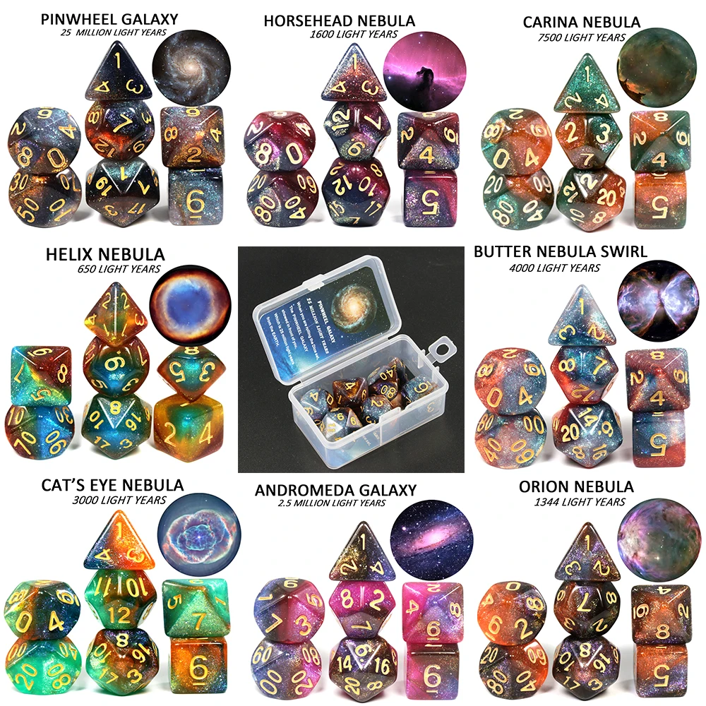 Высокое качество, космическая галактика, концепт, кости, 7 шт., ролевые игры, настольные аксессуары, 8 тем, рождественский подарок, настольные игры, кости